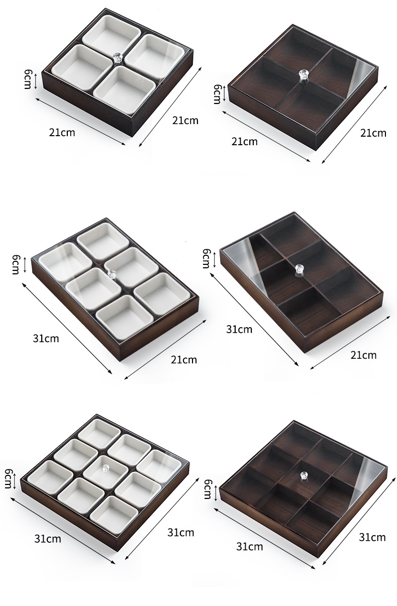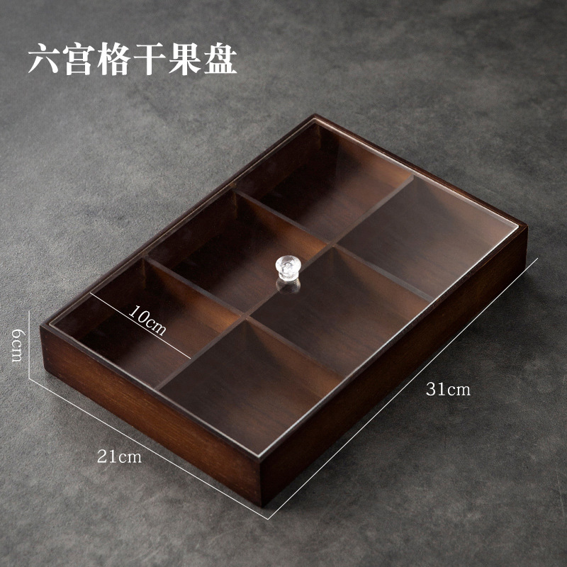 • 호두나무 색상 6칸 뚜껑 달린 다과 트레이 (흰나비 장식 포함)
