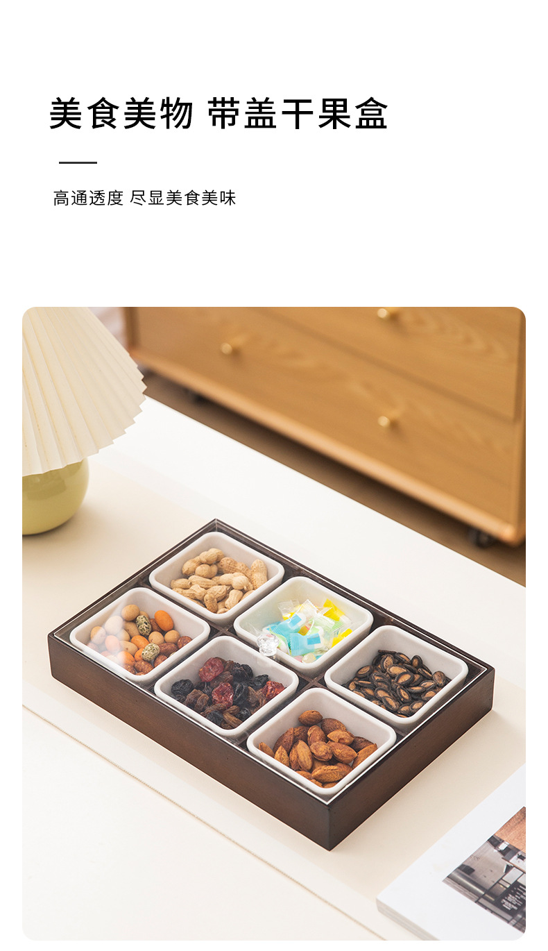 대나무 Jiugongge 말린 과일 접시 뚜껑 과일 사탕 간판 거실 가정용 딤섬 트레이 딤섬 접시 차 접시스토어 가기