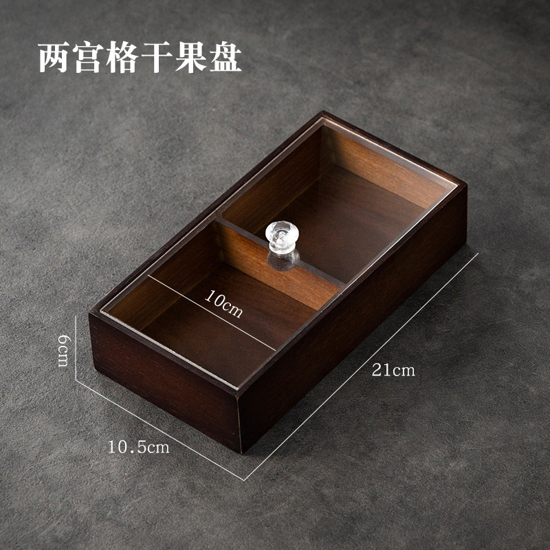 • 호두색 2각형 격자 티 트레이(뚜껑 포함)