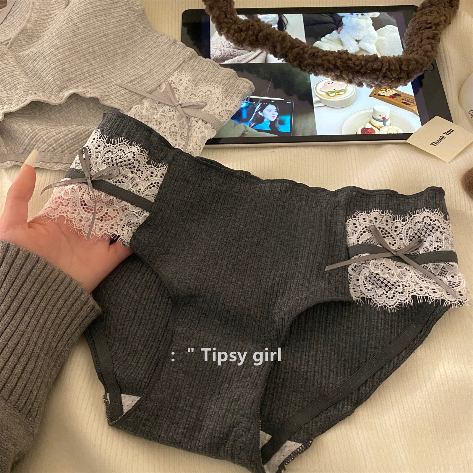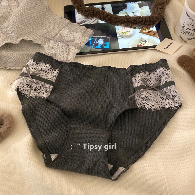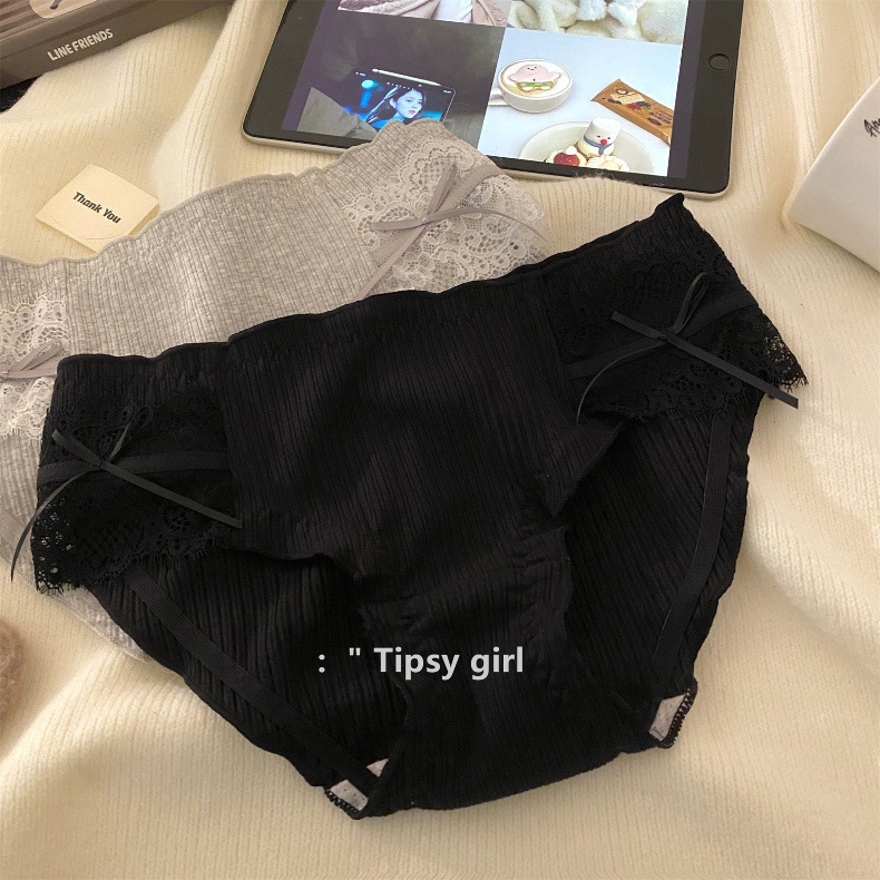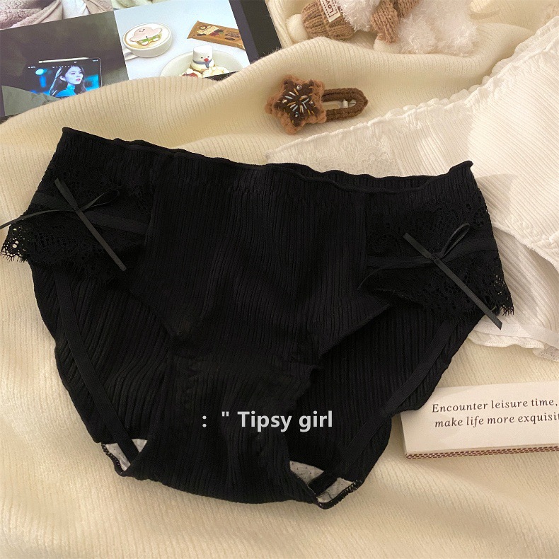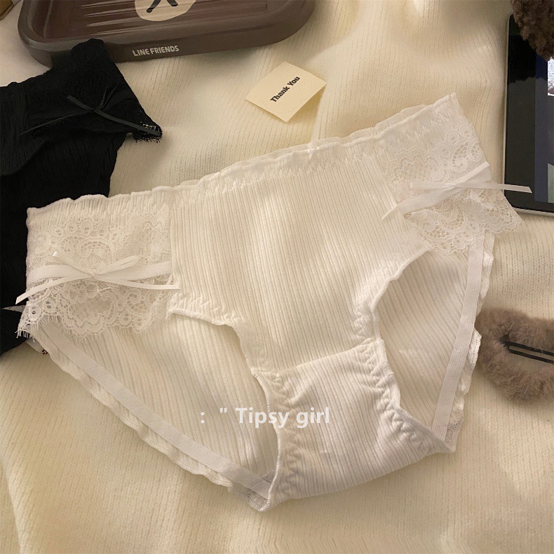 "일출 분위기" 레이스 스티칭 퓨어 코튼 스레드 걸스 속옷 걸스 속옷 중 허리 봄과 가을
