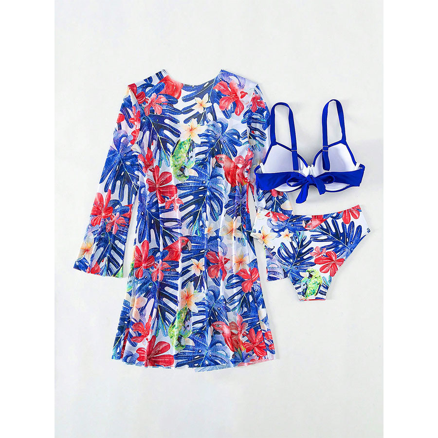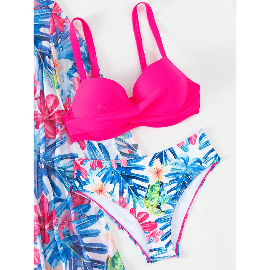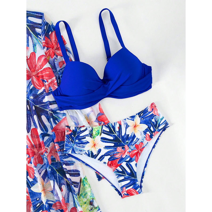 2025 유럽과 미국 단일 섹시한 강철 지원은 높은 허리 인쇄 휴일 선 스크린 블라우스 3 피스 분할 수영복 여성을 모았습니다.스토어 가기