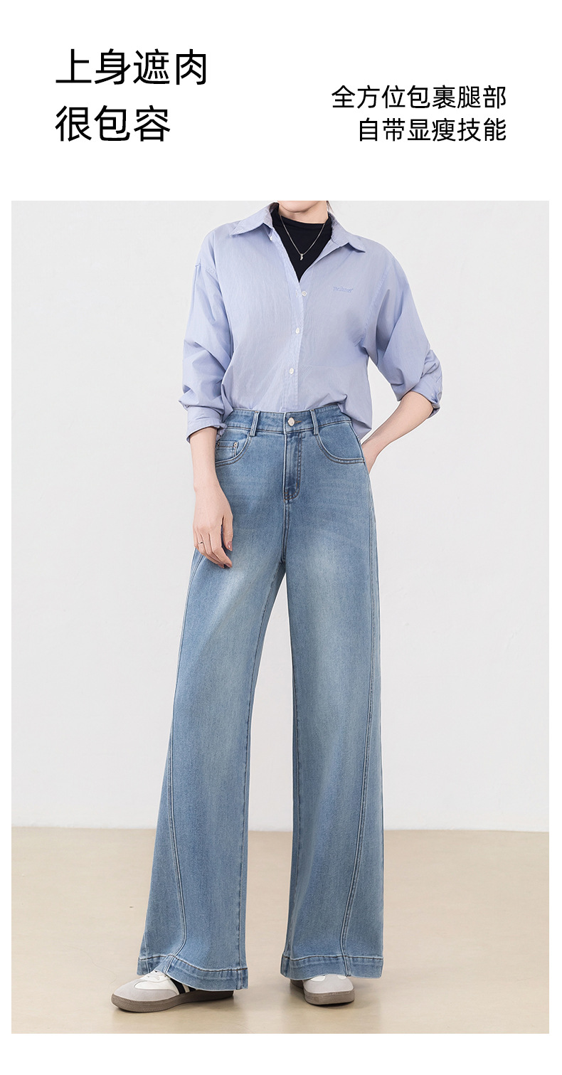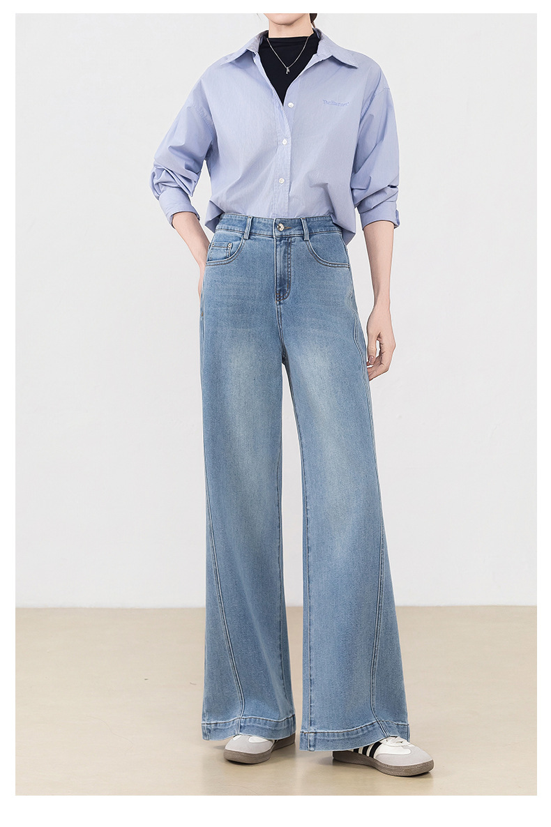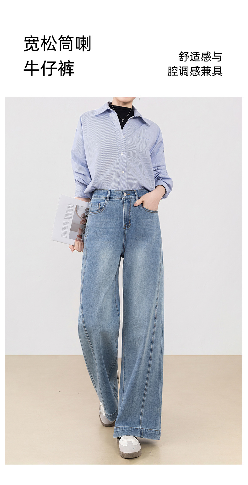 옌루이 패셔너블하고 고급스러운 여성용 와이드 데님 팬츠, 2026년 신상 하이웨이스트 루즈핏 스트레이트 플레어 롱 팬츠스토어 가기