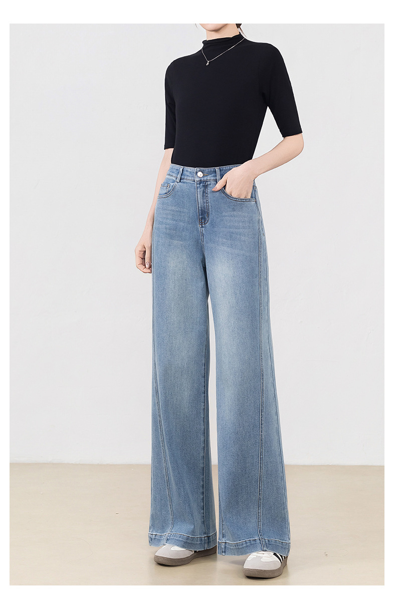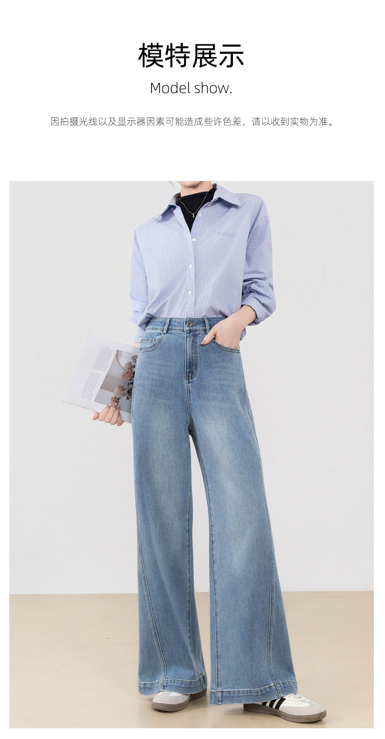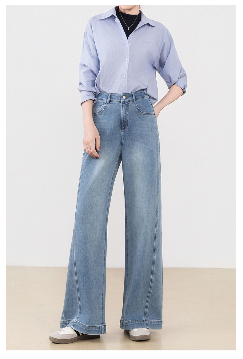 옌루이 패셔너블하고 고급스러운 여성용 와이드 데님 팬츠, 2026년 신상 하이웨이스트 루즈핏 스트레이트 플레어 롱 팬츠스토어 가기