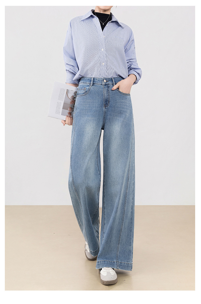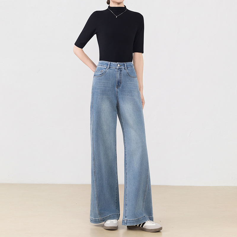 옌루이 패셔너블하고 고급스러운 여성용 와이드 데님 팬츠, 2026년 신상 하이웨이스트 루즈핏 스트레이트 플레어 롱 팬츠