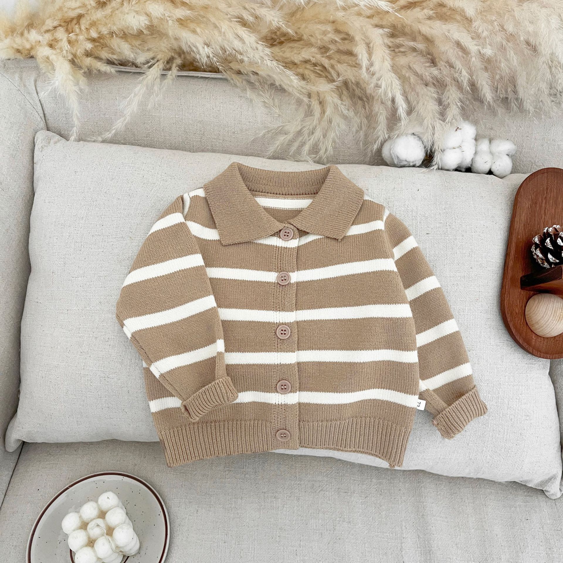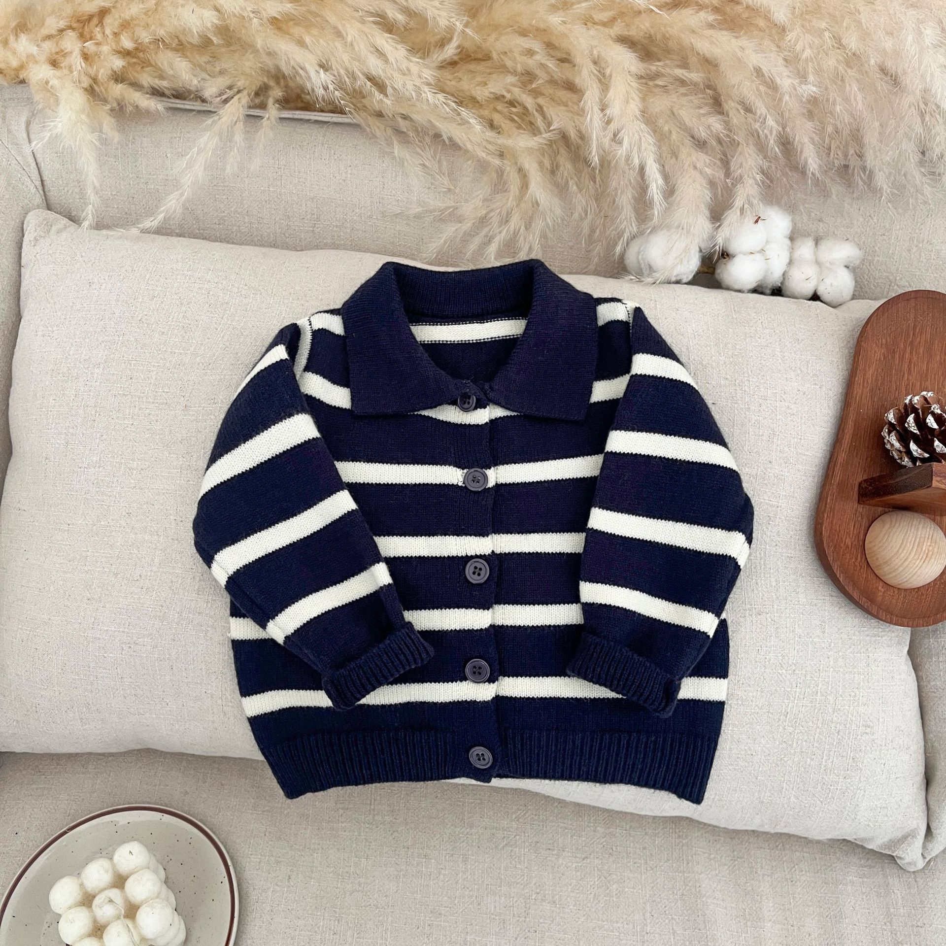 소년 스웨터 봄 니트 카디건 2025 새로운 스타일 베이비 스트라이프 탑 가을 옷깃 올 매치 재킷스토어 가기