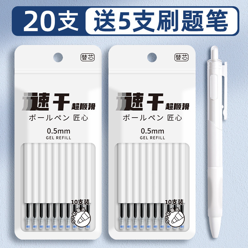Baizhi 프레스 유형 중립 리필 0.5mm 검은 빠른 건조 학생들은 리필 테스트 st 리필 브러시 펜을 사용합니다.