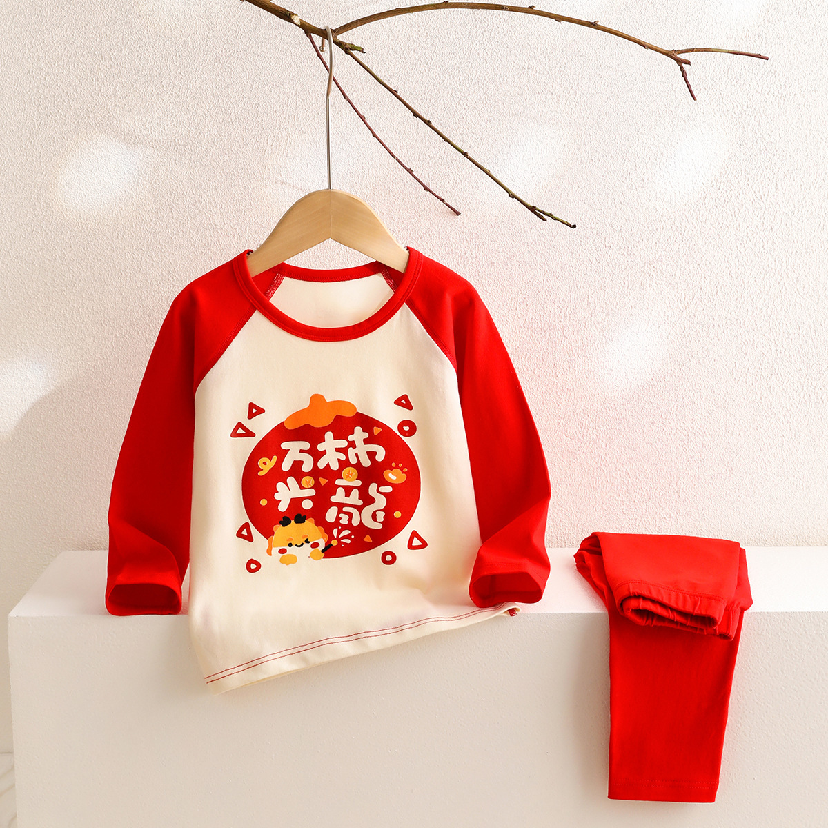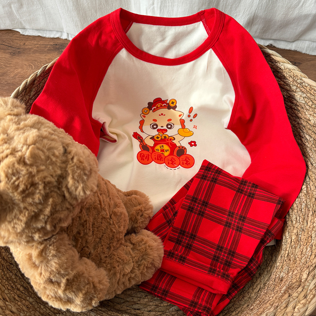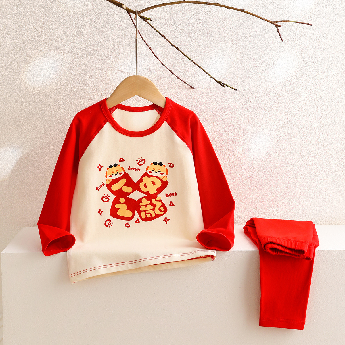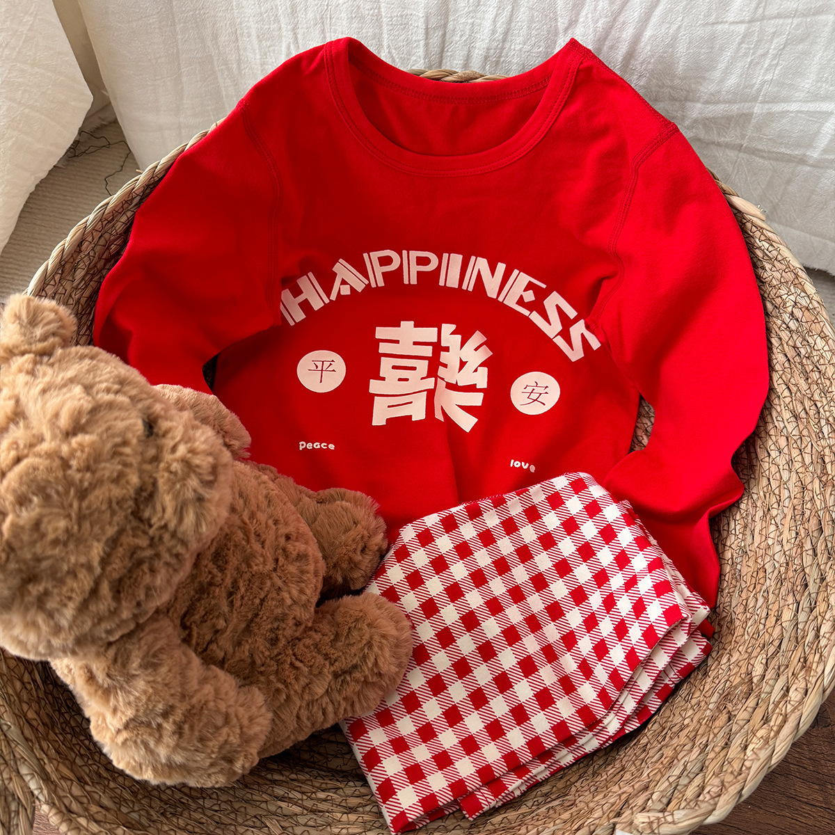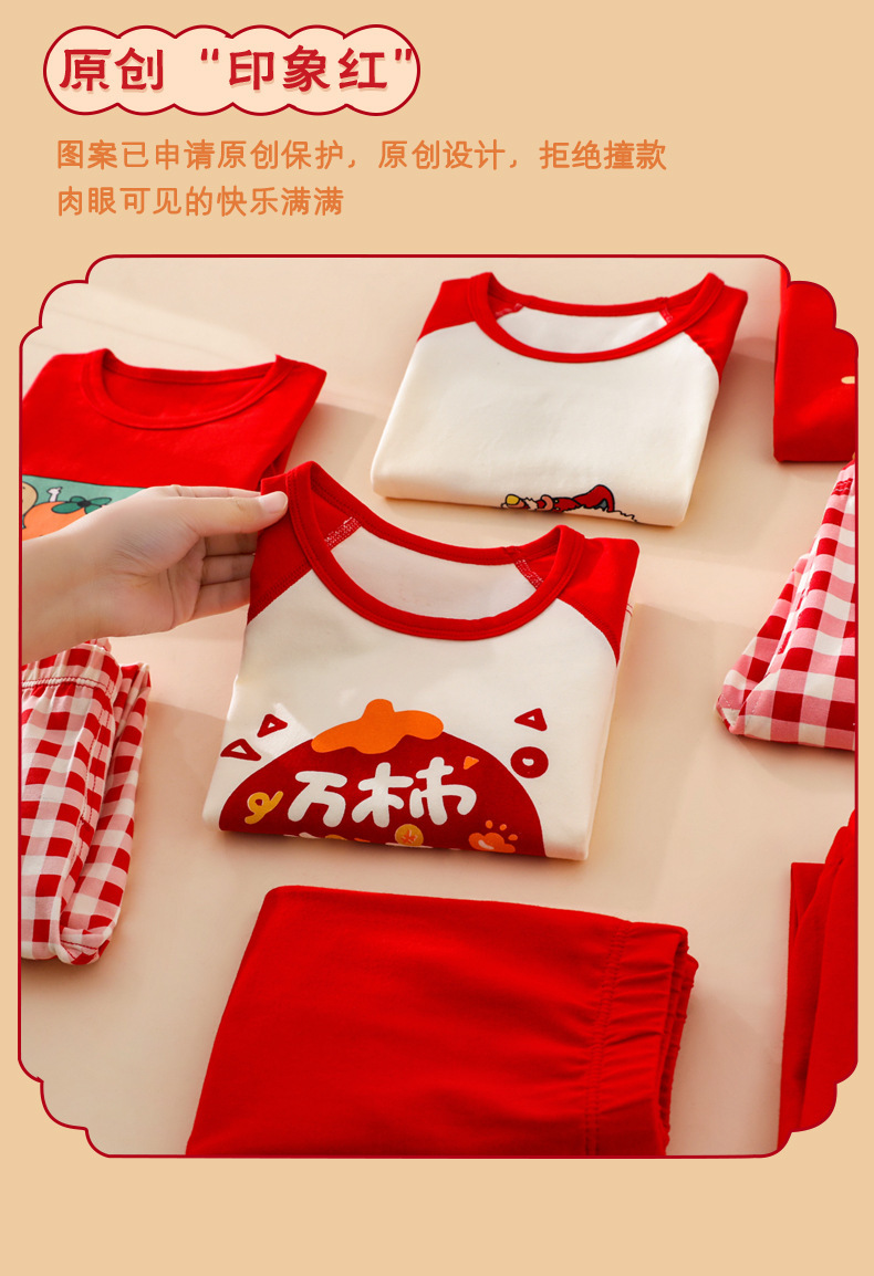 어린이 잠옷 중국 스타일 신년 스타일 클래스 빨간 부모-어린이 속옷 가을 옷 가을 바지 홈 의류 소년 소녀스토어 가기