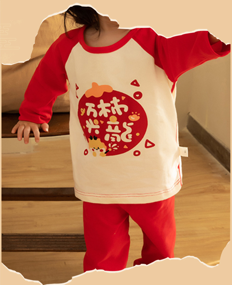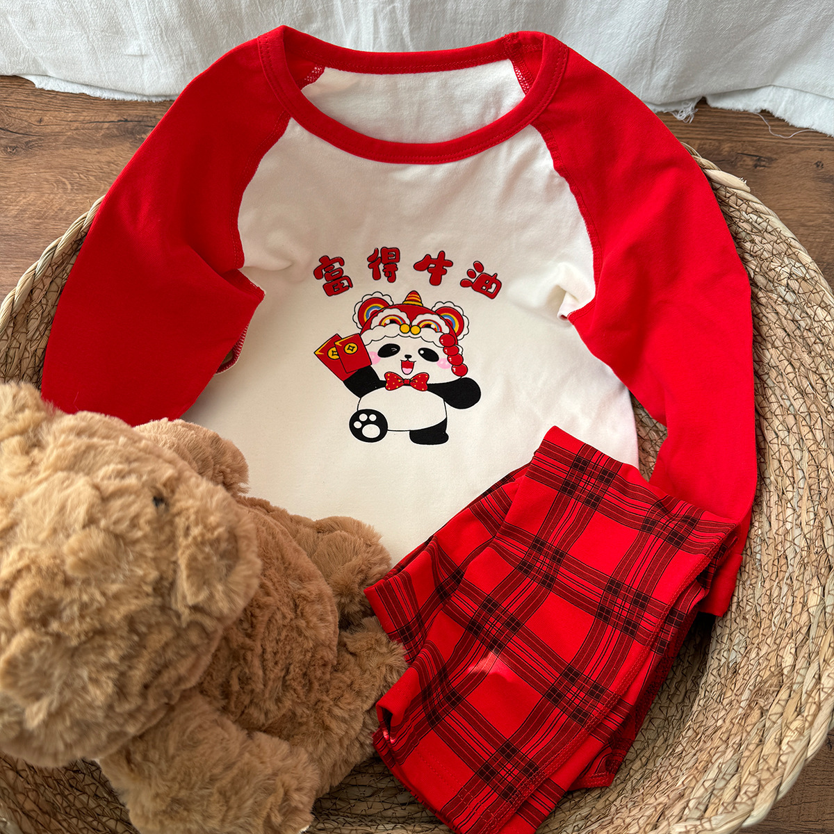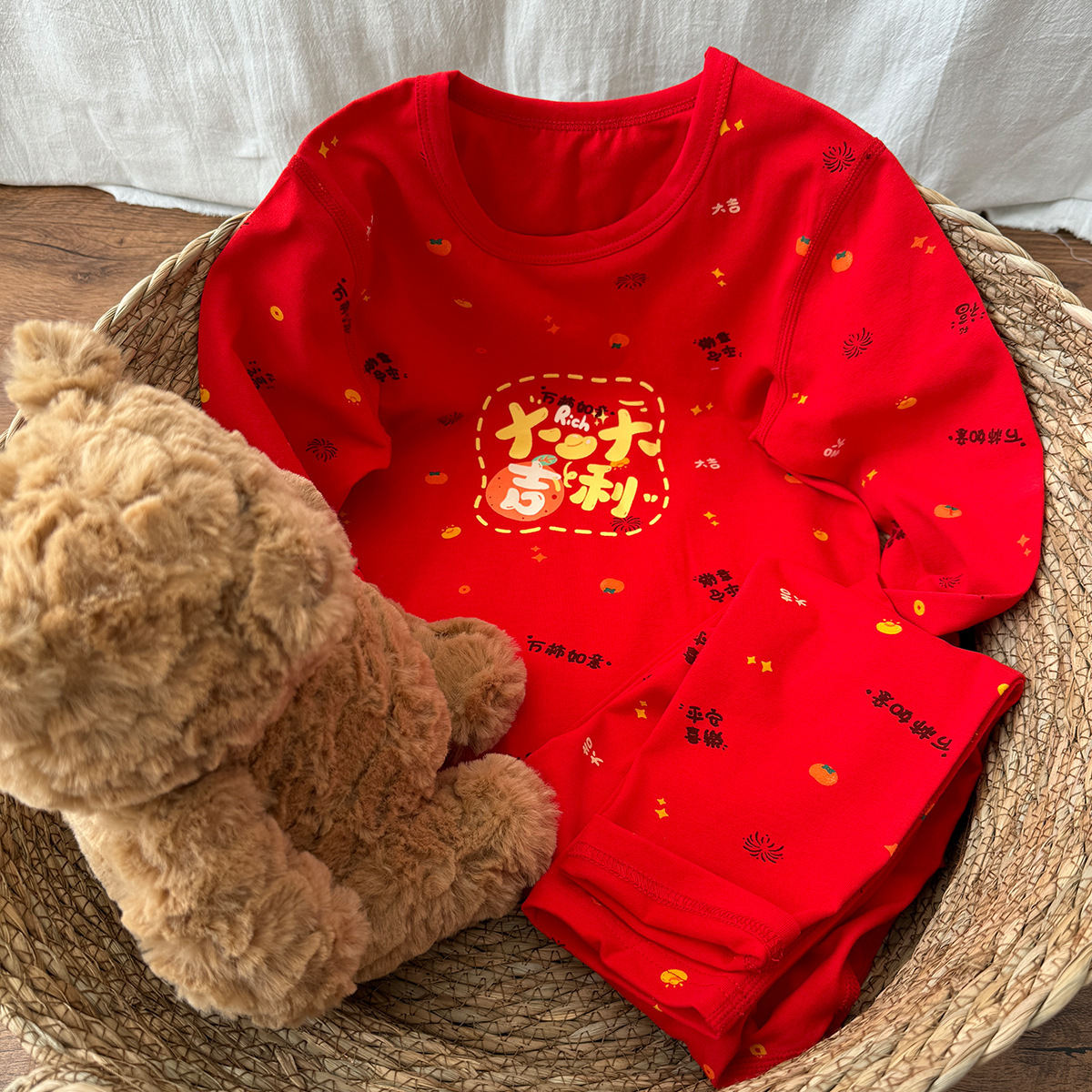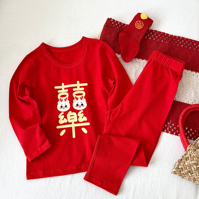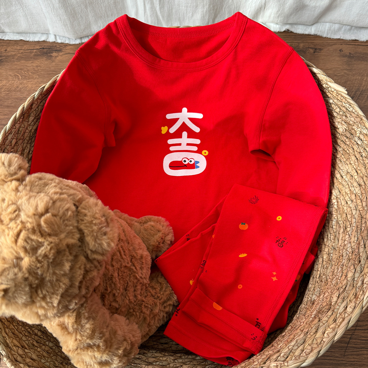 어린이 잠옷 중국 스타일 신년 스타일 클래스 빨간 부모-어린이 속옷 가을 옷 가을 바지 홈 의류 소년 소녀스토어 가기