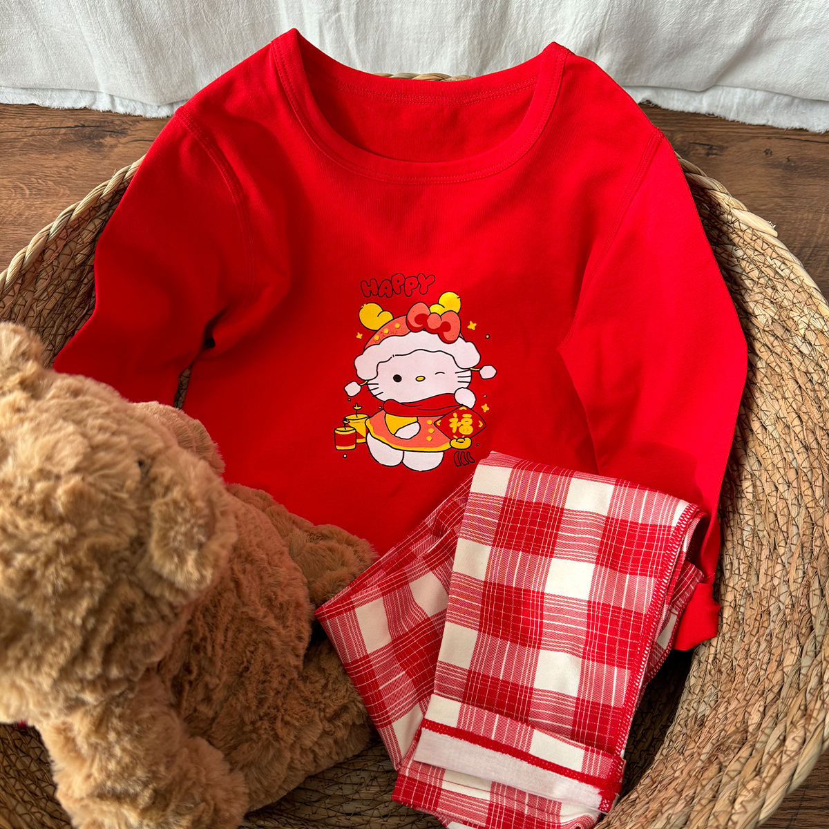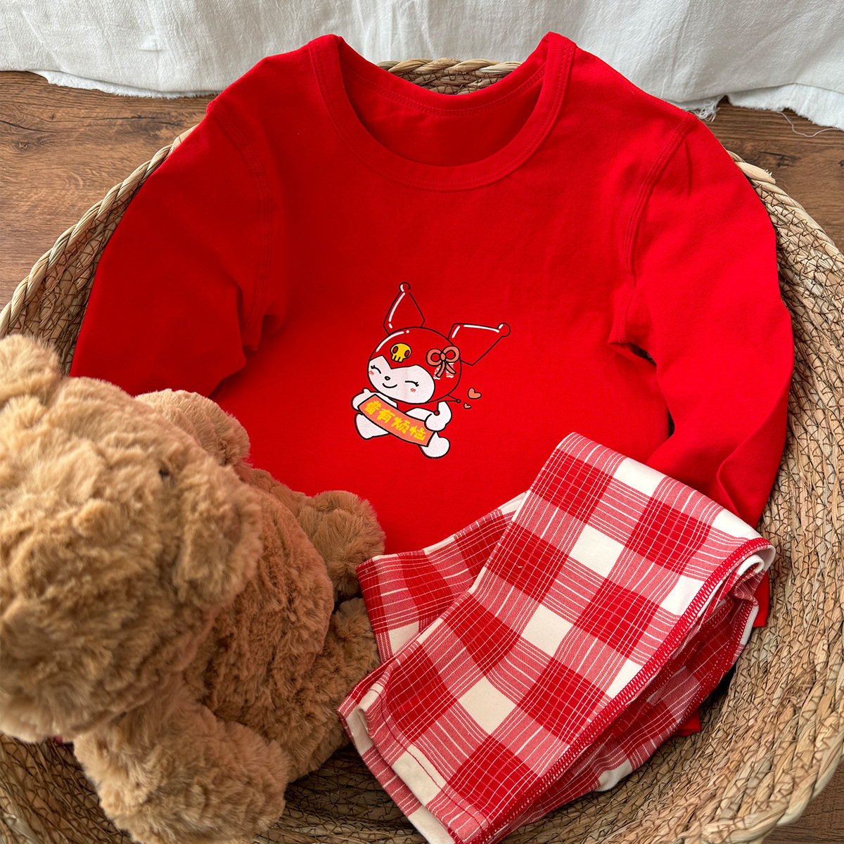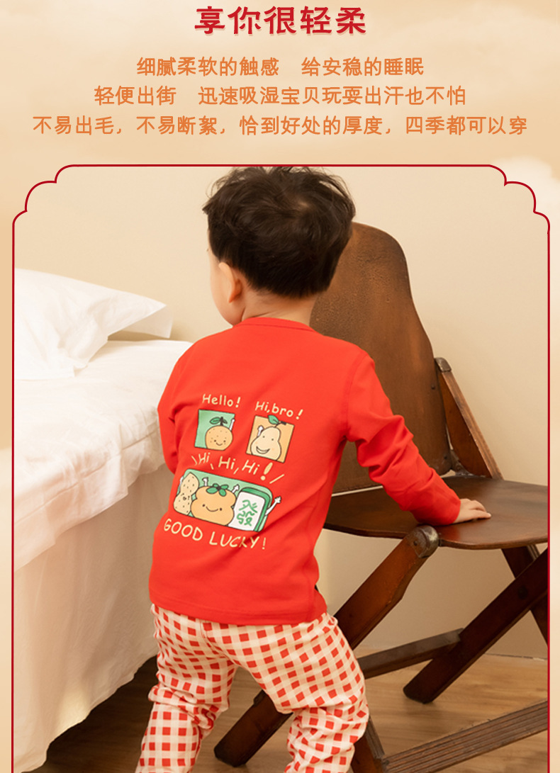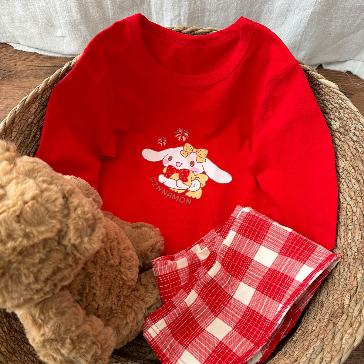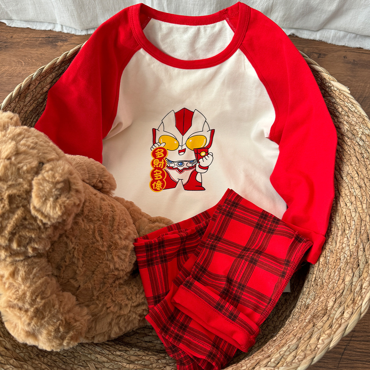 어린이 잠옷 중국 스타일 신년 스타일 클래스 빨간 부모-어린이 속옷 가을 옷 가을 바지 홈 의류 소년 소녀스토어 가기