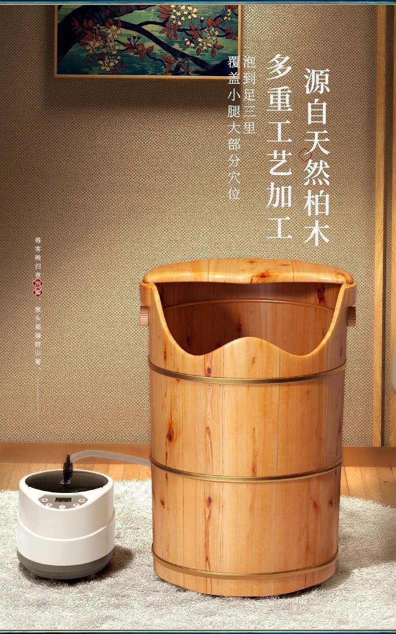 삼나무 발 양동이 나무 양동이 가정용 높고 깊은 양동이 단단한 나무 마사지 훈증 발 양동이 발 세척 분지스토어 가기