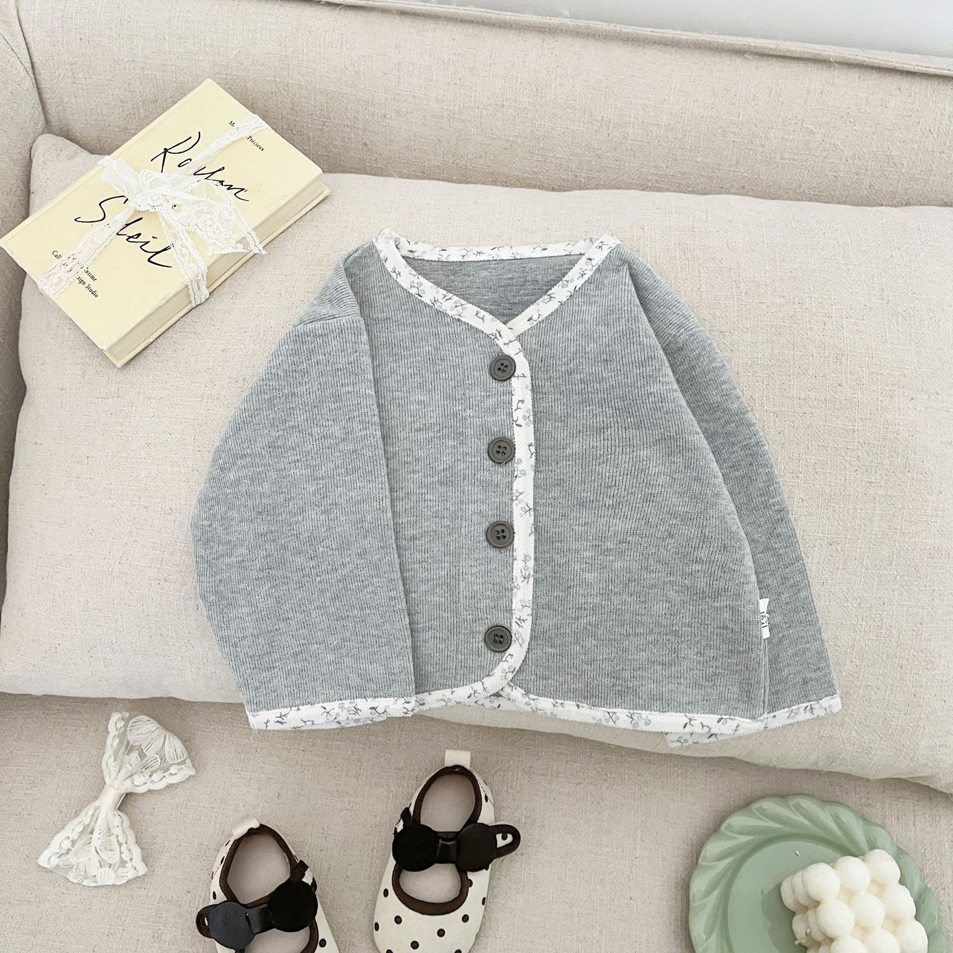 한국 여아 카디건 봄옷 2025 새로운 스타일 베이비 엣지 재킷 귀여운 베이비 심플하고 다재다능한 옷스토어 가기