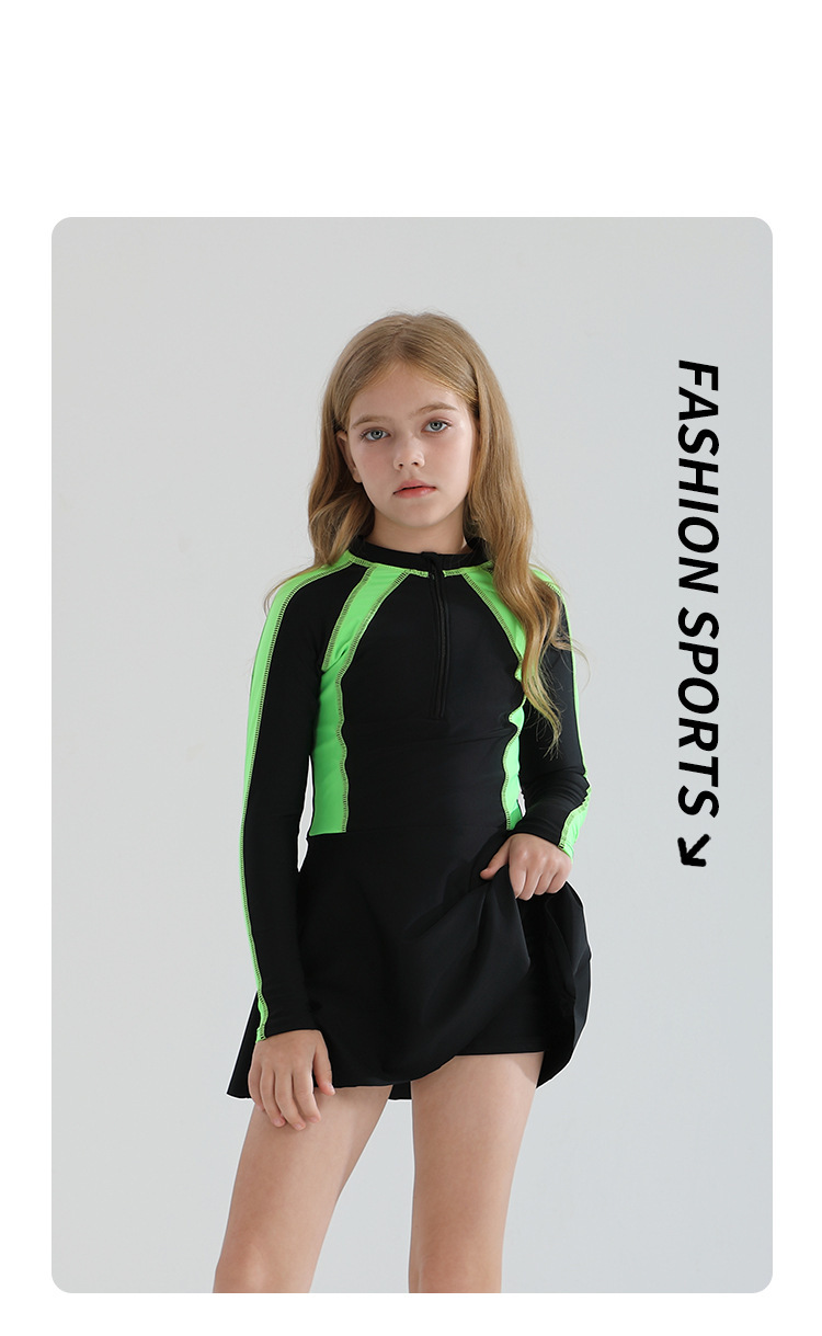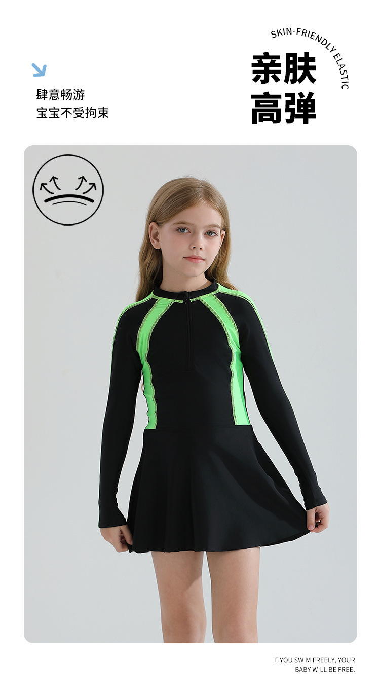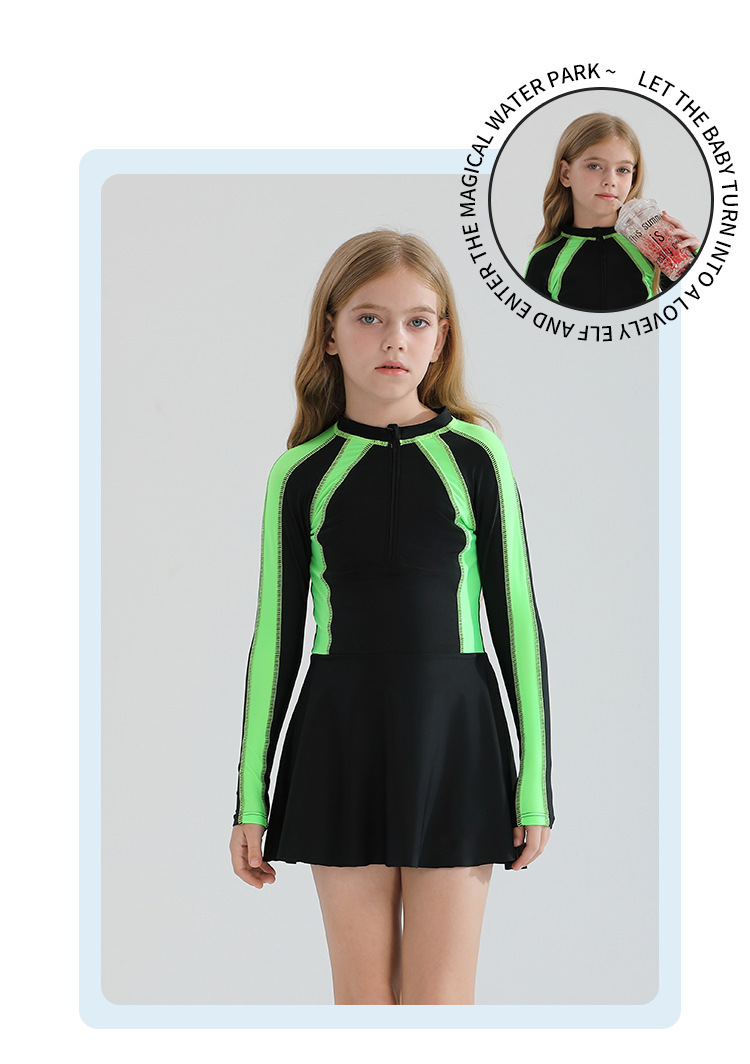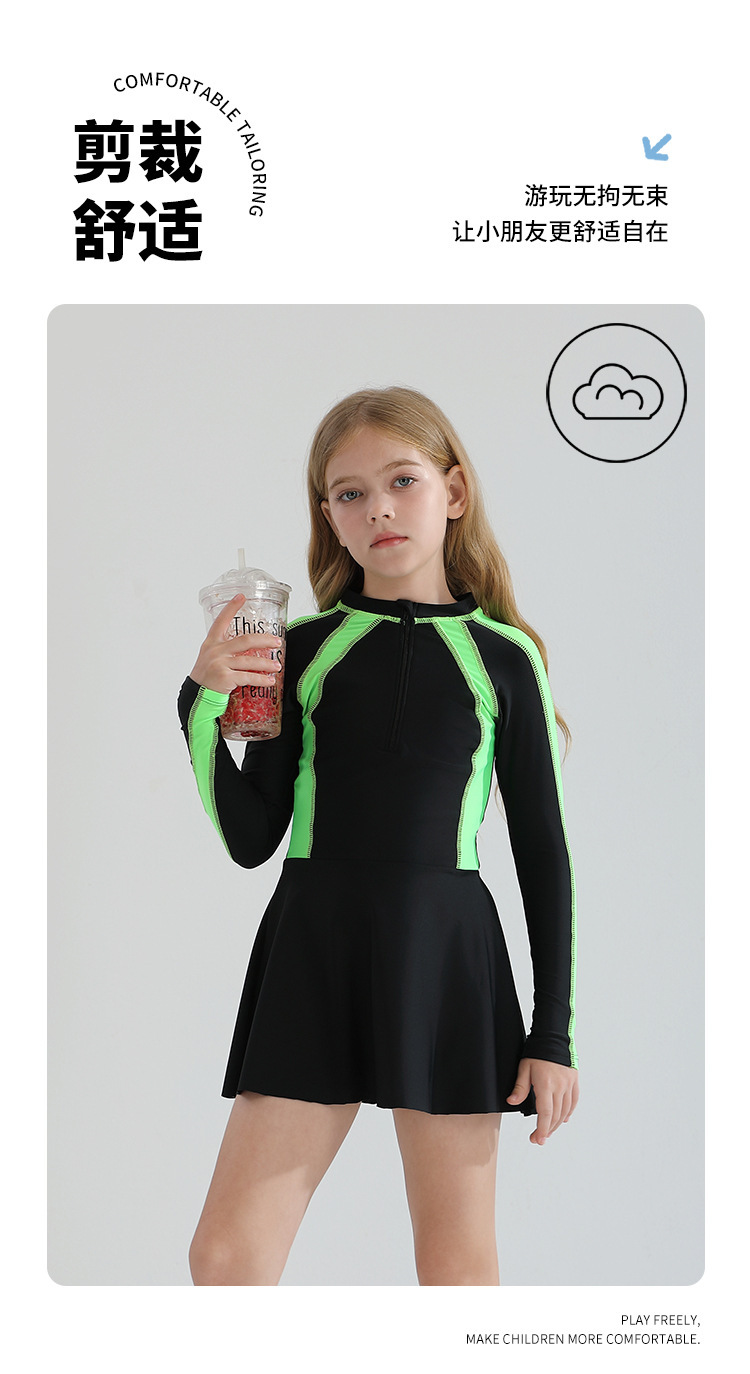 어린이 수영복 소녀의 바디 스커트 스타일 보수적 인 긴 소매 태양 보호 2025 중년 및 대형 어린이를위한 새로운 스타일 온천 수영복스토어 가기
