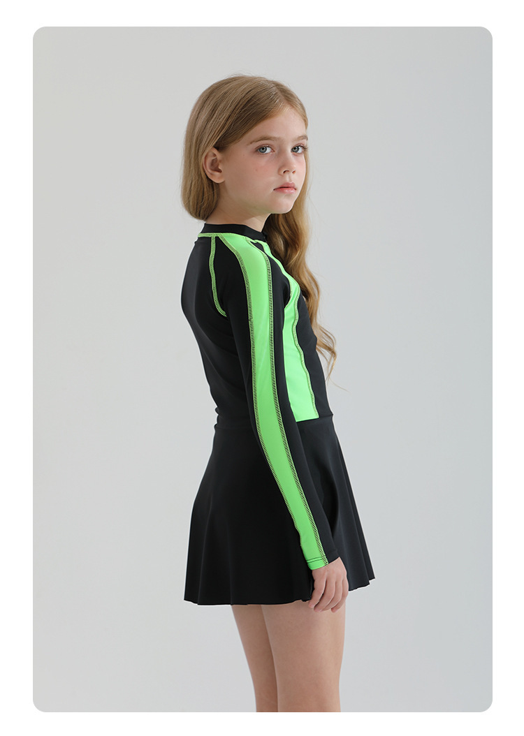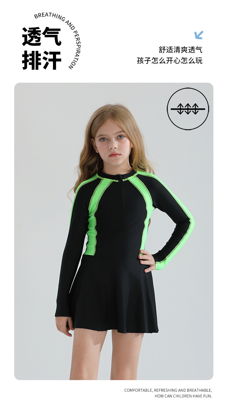 어린이 수영복 소녀의 바디 스커트 스타일 보수적 인 긴 소매 태양 보호 2025 중년 및 대형 어린이를위한 새로운 스타일 온천 수영복