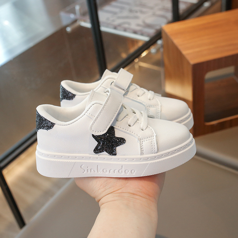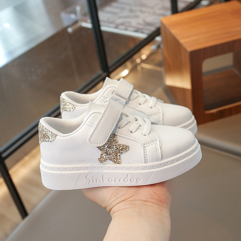 2026년 봄/가을 신상품, 해외 무역 인기 아동 운동화, 스포츠 화이트 슈즈, 반짝이는 별 모양, 남아/여아 신발스토어 가기