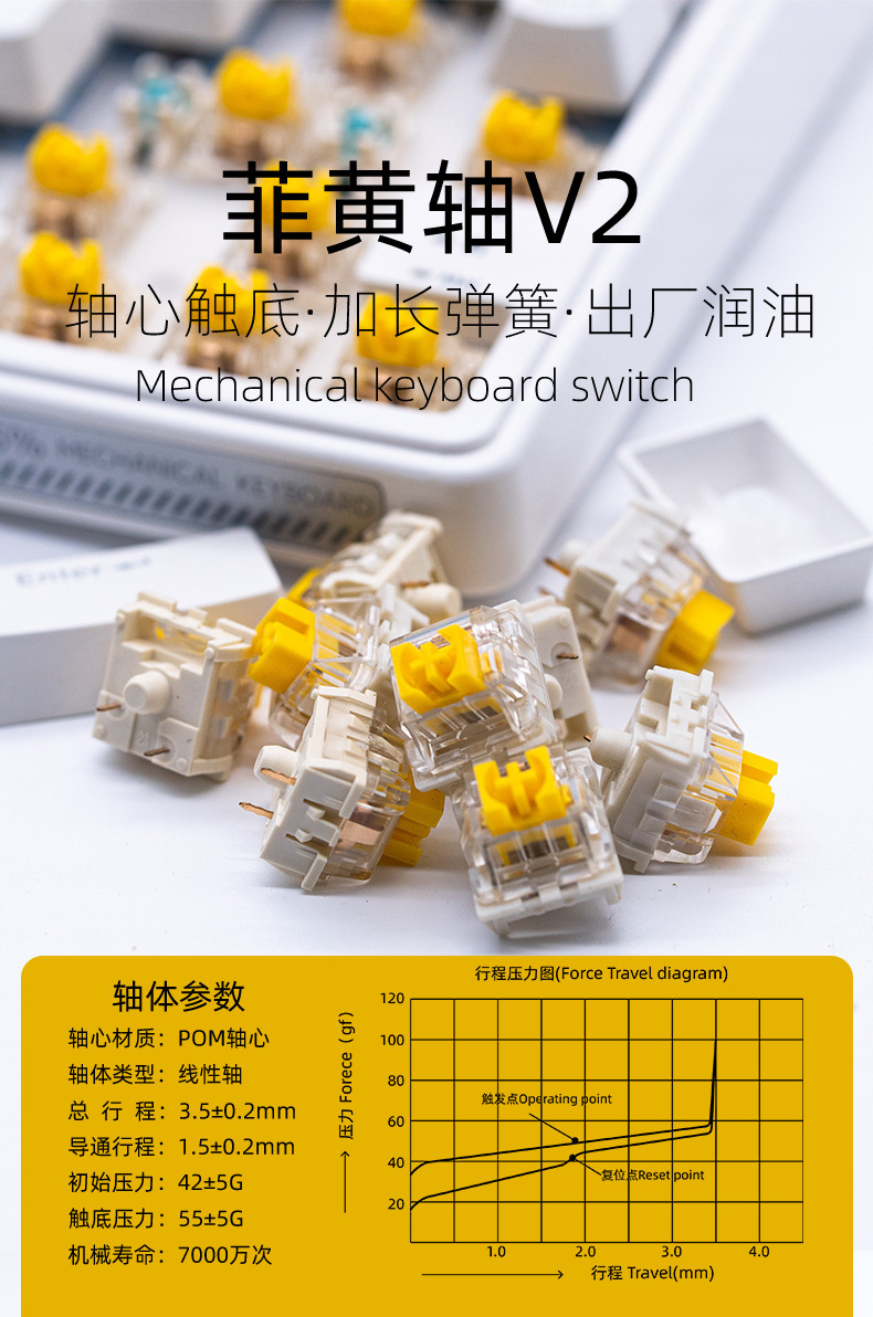 국경 간 공급 기계식 키보드 스위치 샤프트 바디 맞춤형 페난 트렌 옐로우 샤프트 V2 선형 샤프트 바디 핫 플러그 키보드 지원스토어 가기