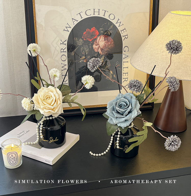 • 가을 화이트 카모마일 러버 로즈 블랙 디퓨저 아로마테라피
