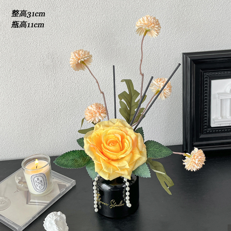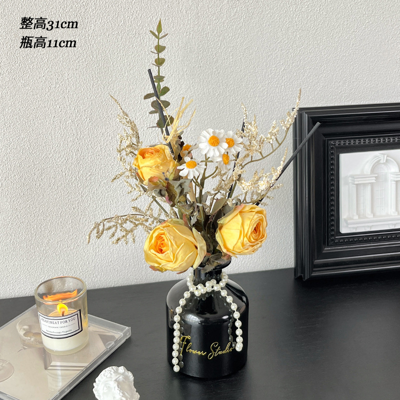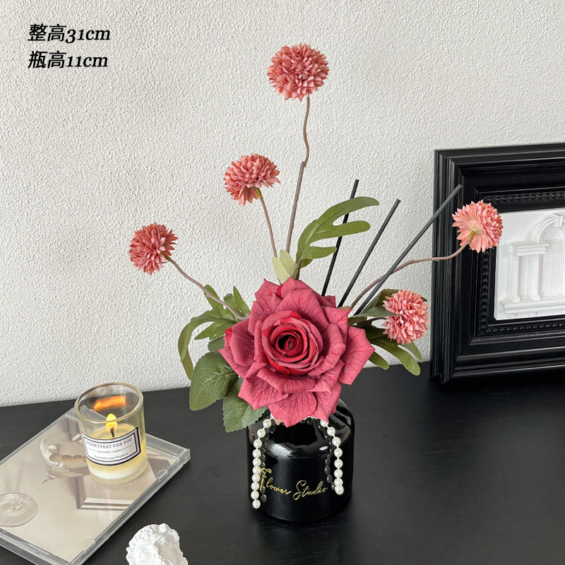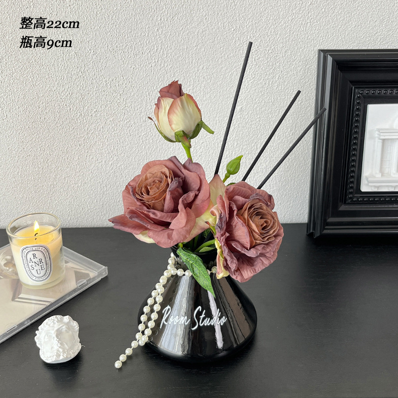 검은 치마 아로마 테라피 꽃 장식 거실 데스크탑 화장실 꽃 장식 실크 꽃