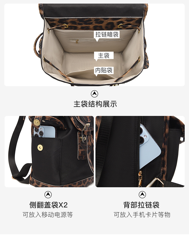 국경 바느질 레오파드 무늬 여성 배낭 새로운 야외 패션 배낭 대용량 캐주얼 배낭 여성용 가방스토어 가기