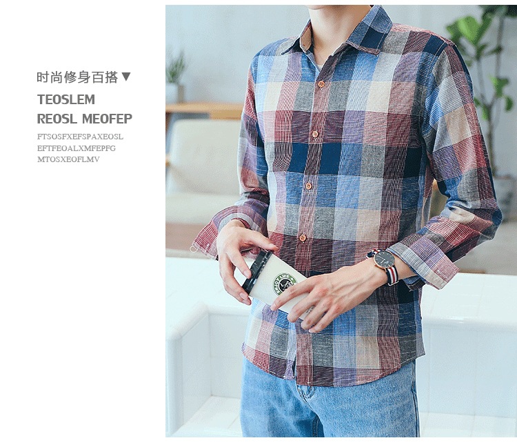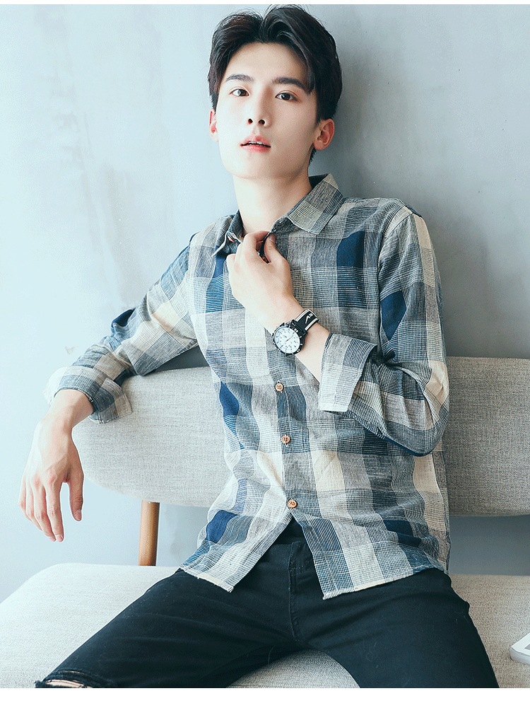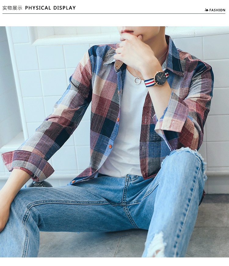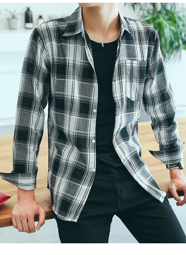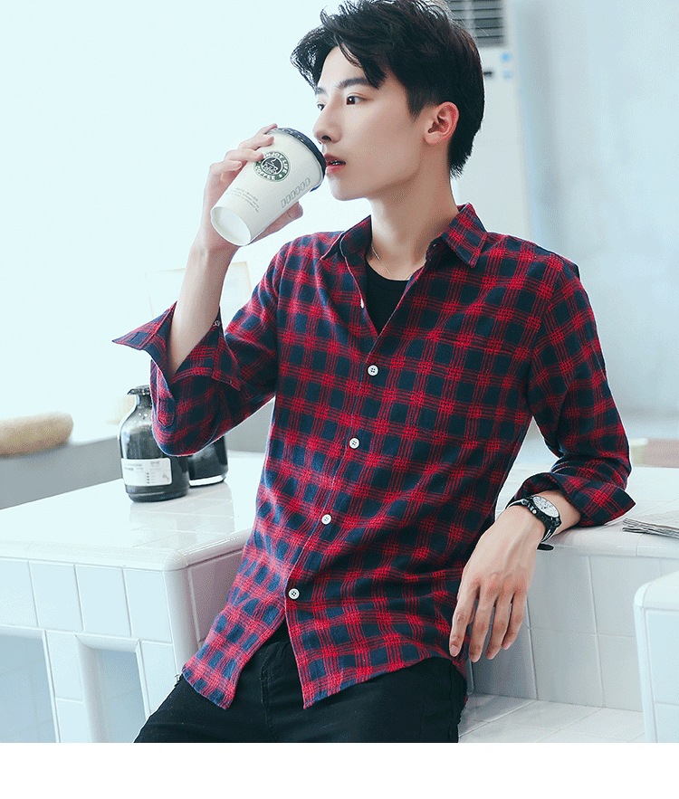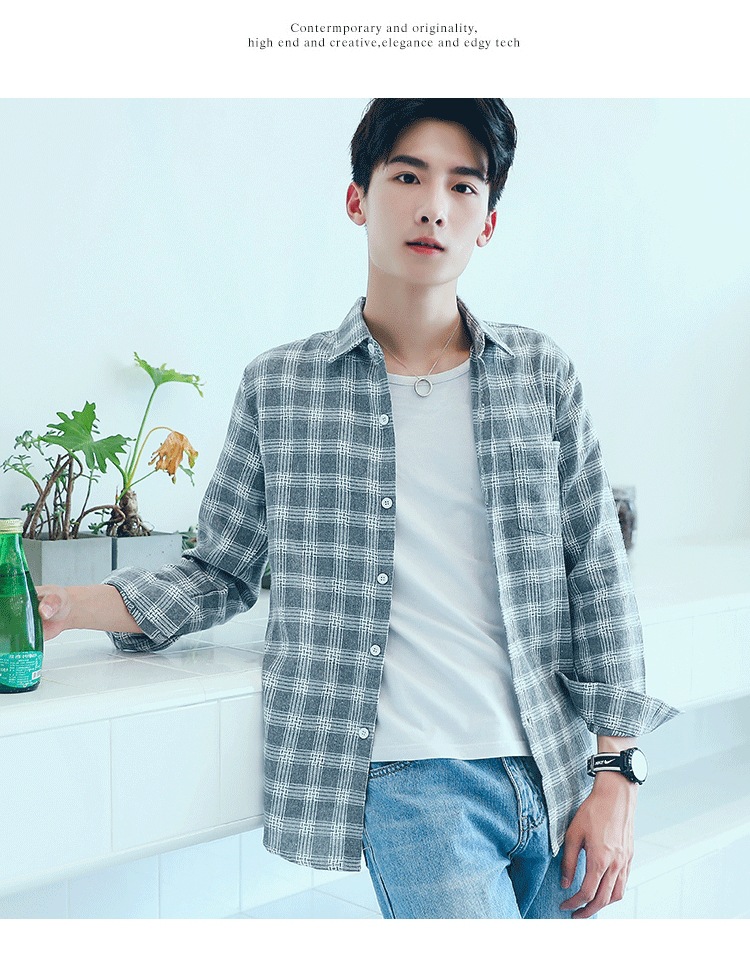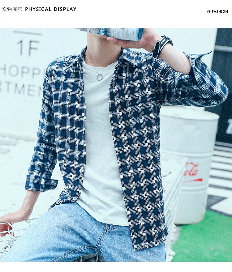 남성용 도매 격자 무늬 긴팔 셔츠, 한국식 슬림핏 청소년 트렌디한 핸섬 셔츠, 커플 캐주얼 얇은 인치 셔츠스토어 가기