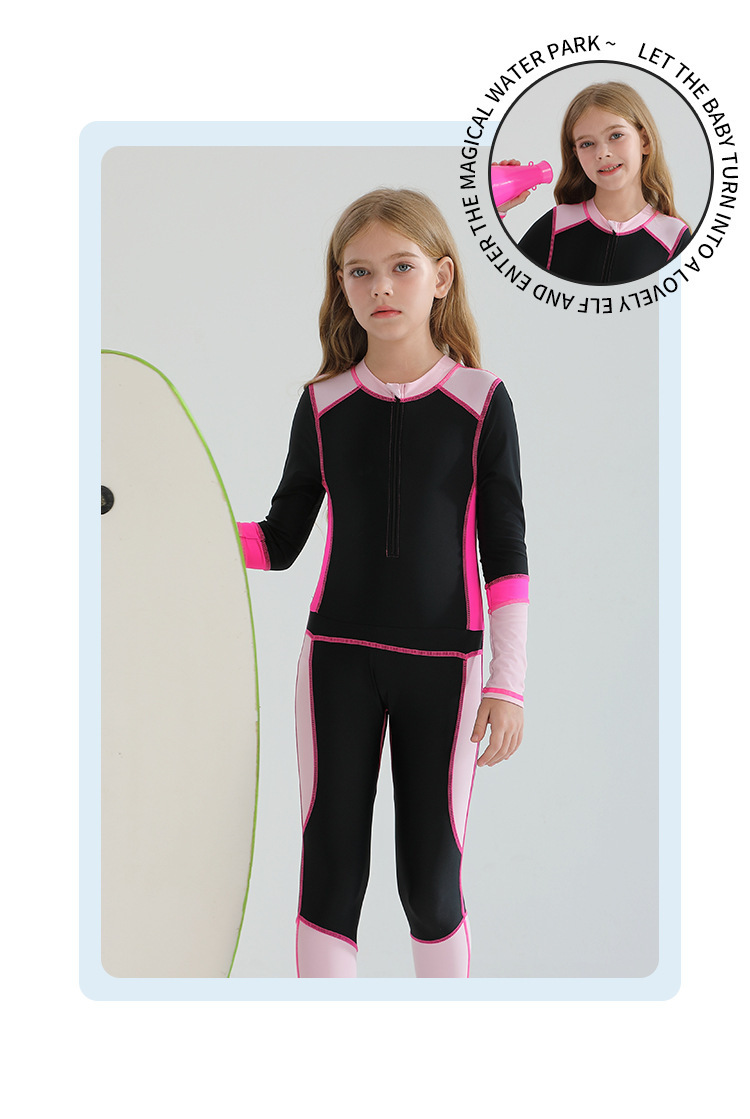 어린이 수영복 걸스 원피스 긴팔 바지 선 스크린 수영복 2025 새로운 스타일의 큰 아이들의 따뜻한 방한 다이빙스토어 가기