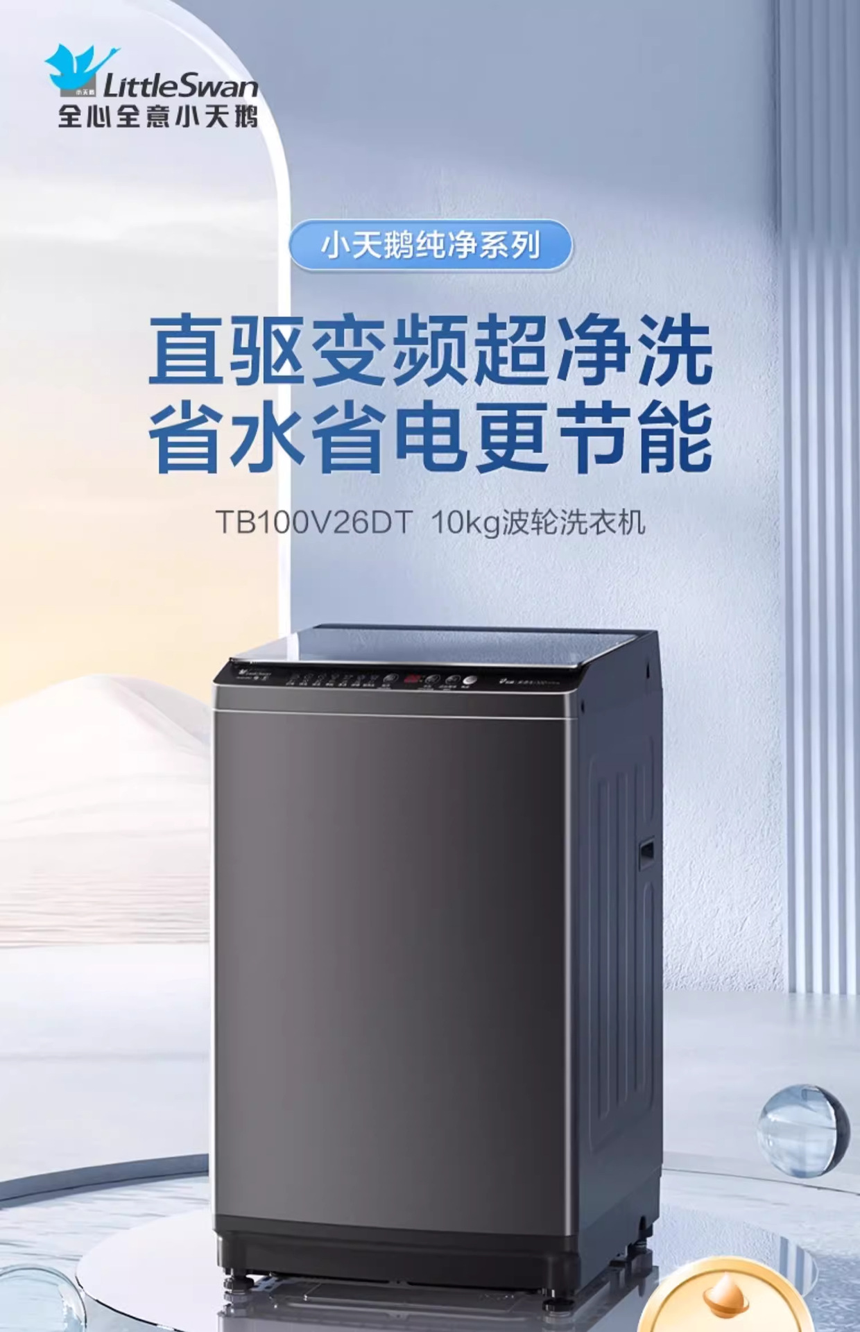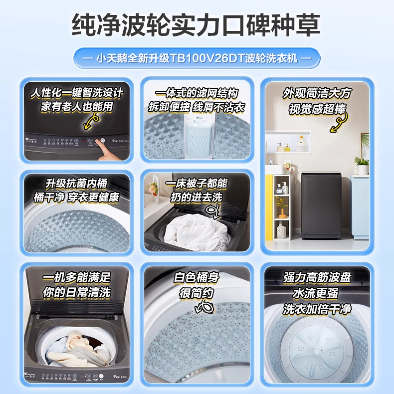 작은 백조 웨이브 휠 직접 드라이브 주파수 변환 자동 용출 통합 가정용 임대 주택 기숙사 TB100V26DT 세탁기스토어 가기