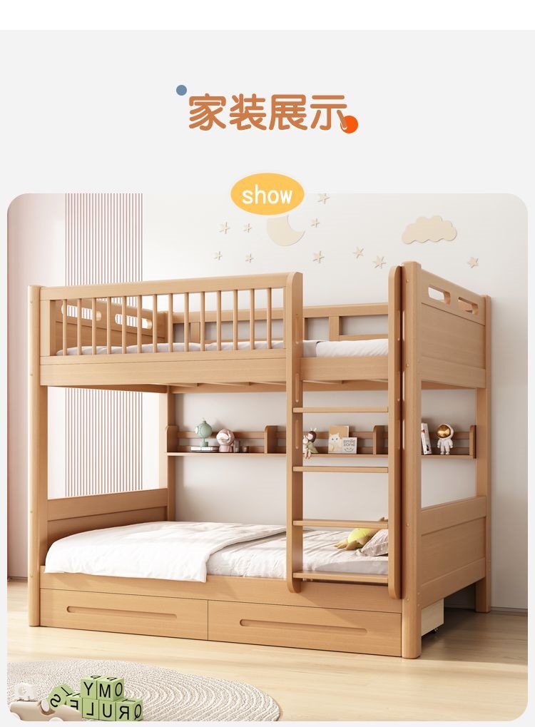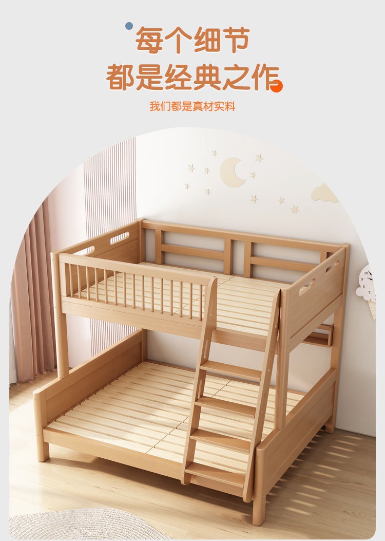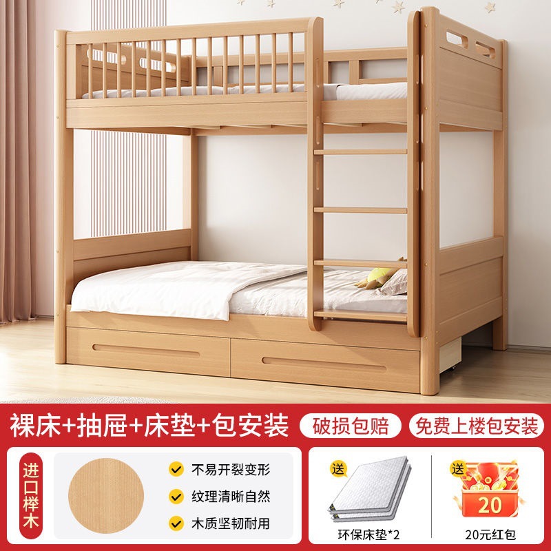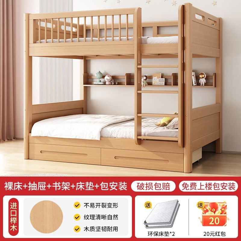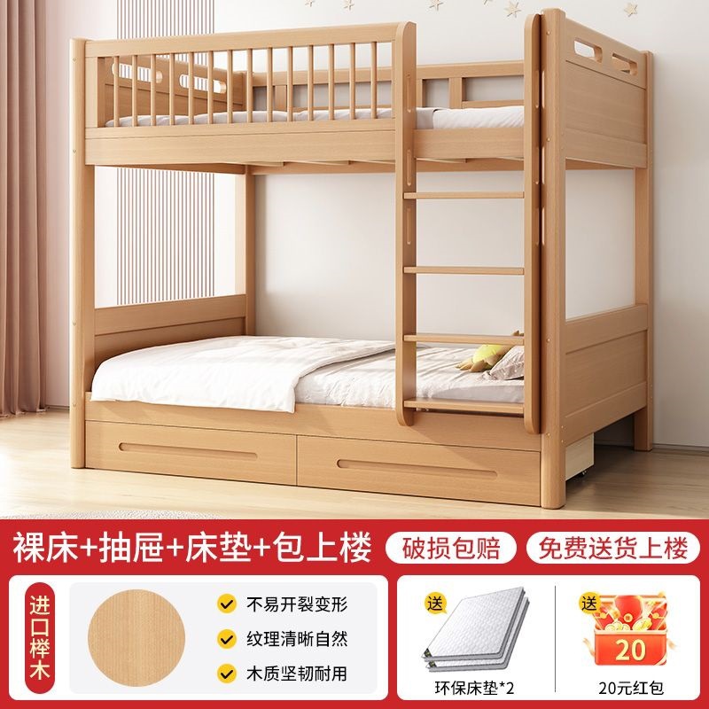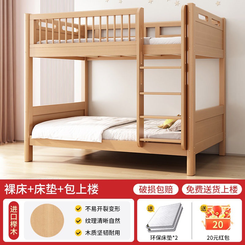 너도밤 나무 기숙사 벙크 침대 침대 같은 폭 2 층 침대 풀 솔리드 우드 더블 레이어 어린이 벙크 높고 낮은 어머니 침대스토어 가기