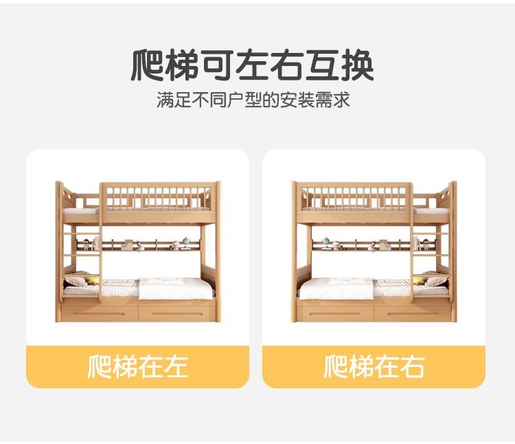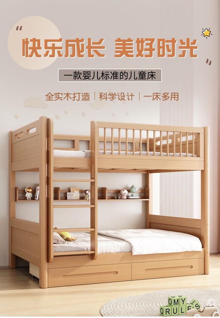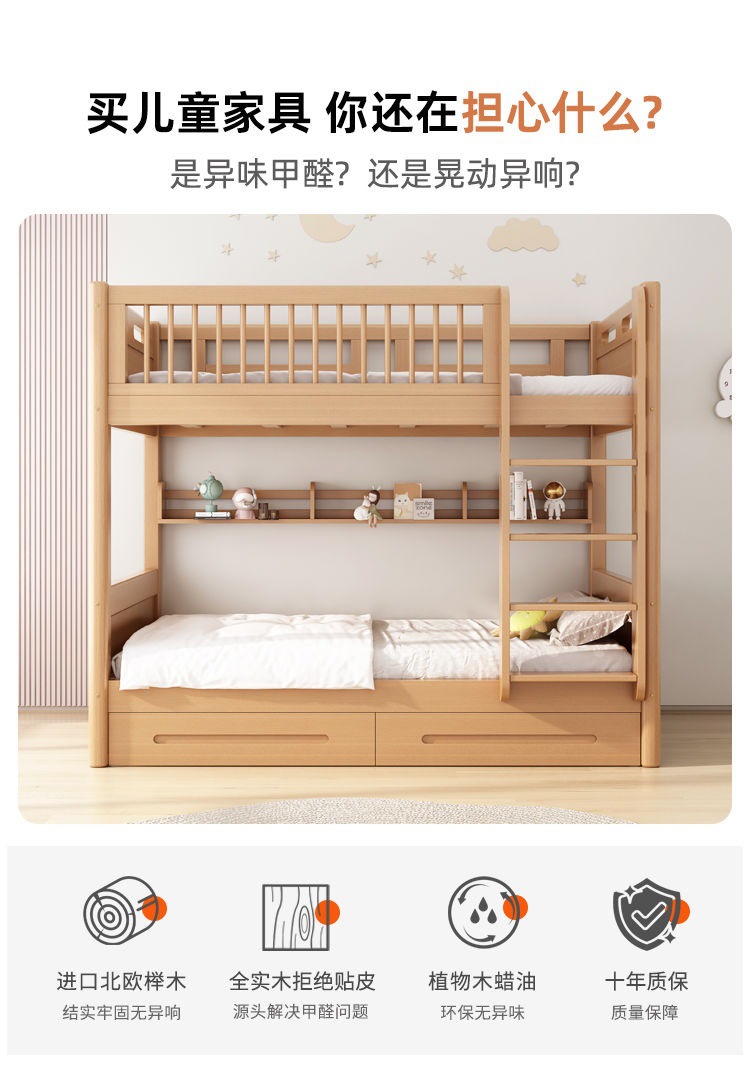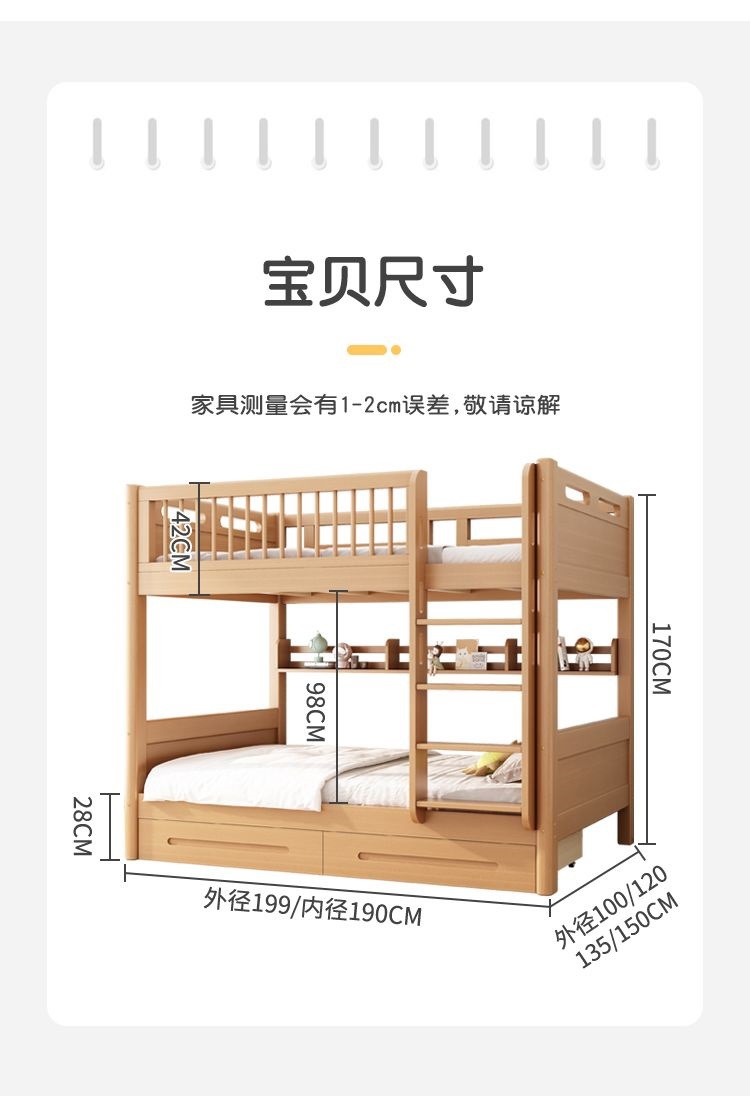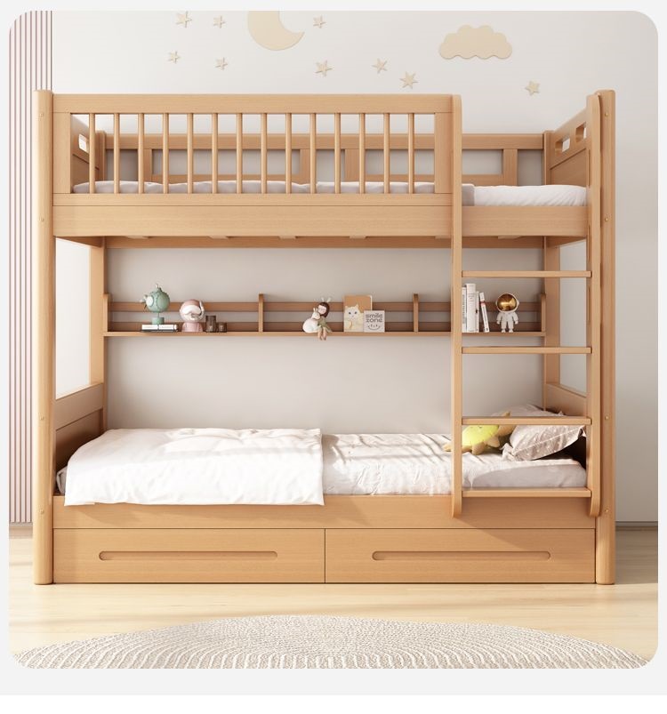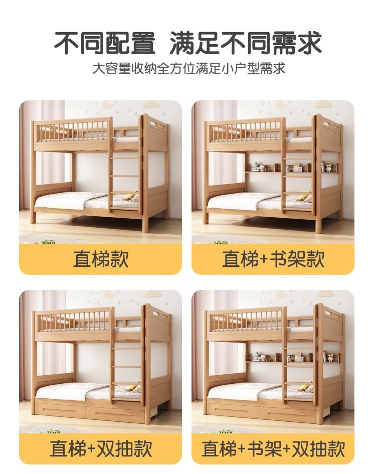 너도밤 나무 기숙사 벙크 침대 침대 같은 폭 2 층 침대 풀 솔리드 우드 더블 레이어 어린이 벙크 높고 낮은 어머니 침대스토어 가기