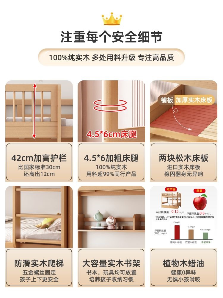너도밤 나무 기숙사 벙크 침대 침대 같은 폭 2 층 침대 풀 솔리드 우드 더블 레이어 어린이 벙크 높고 낮은 어머니 침대