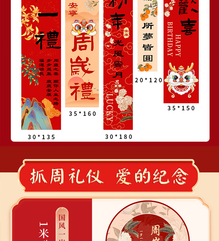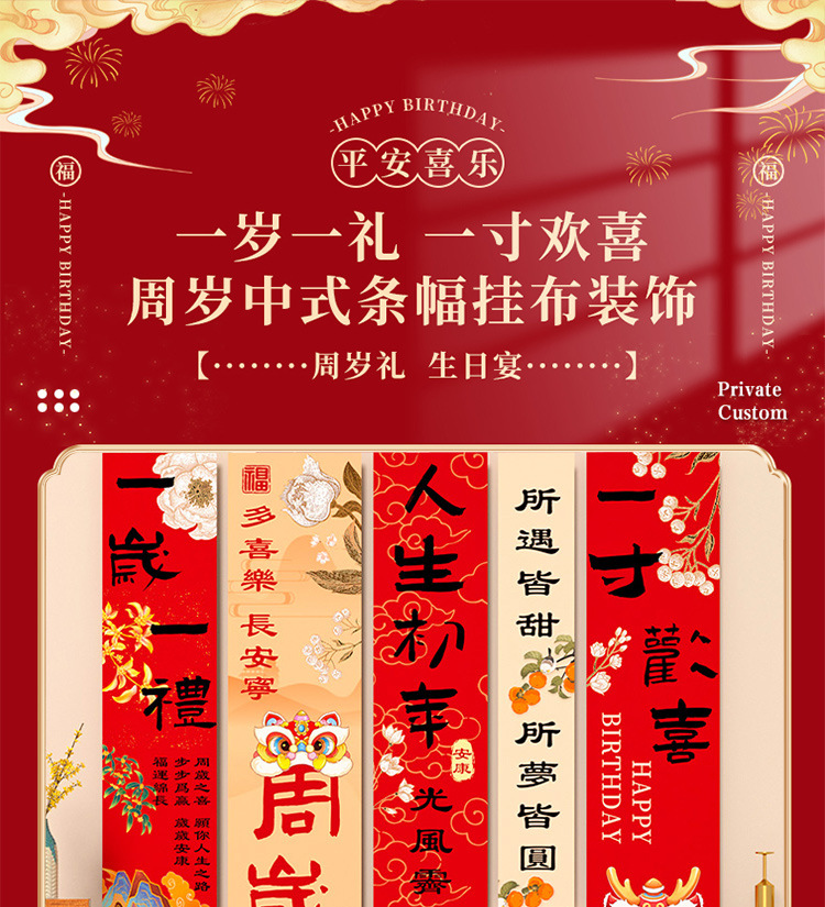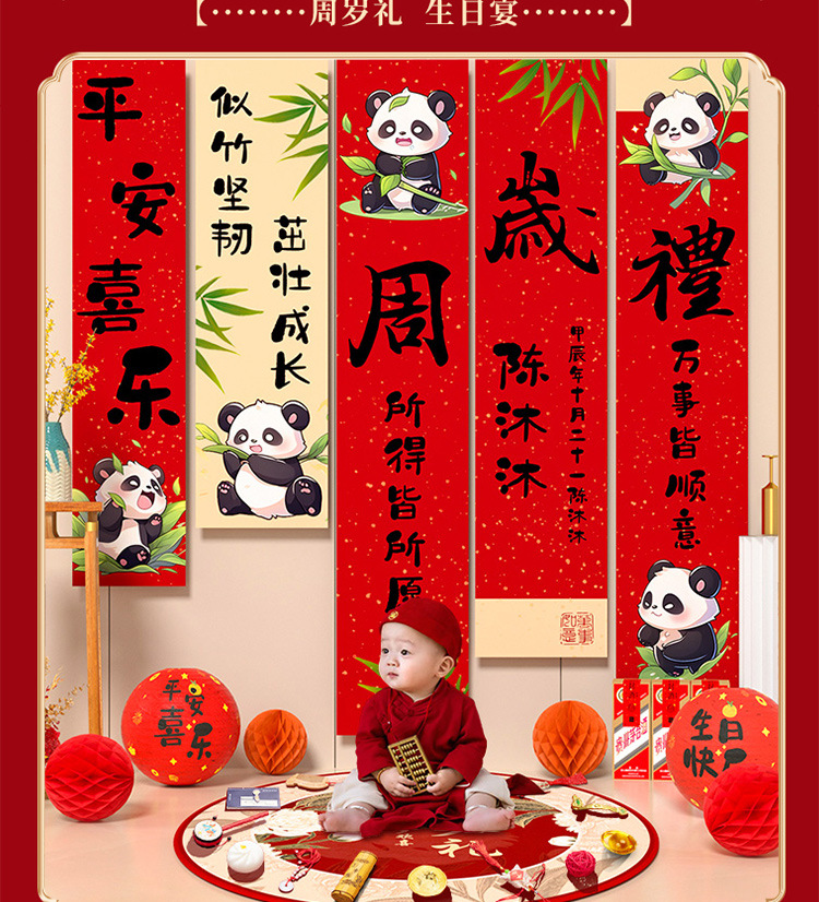 • [무료 와인 밀봉 스티커] 생일 축하 배너(허니콤 랜턴 포함) + 중국식 1세 선물 담요 + 주 18개
