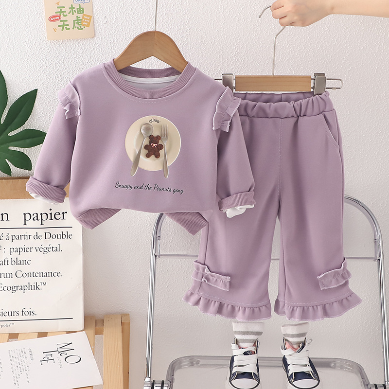 여자 세트 어린이 봄 옷 2025 새로운 아기 소녀의 서양식 땀 스포츠 투피스 세트 어린이 잘 생긴 유행 옷