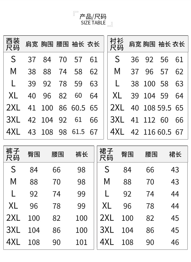 • 검은색 정장 + 바지 + 스커트 + 흰색 셔츠