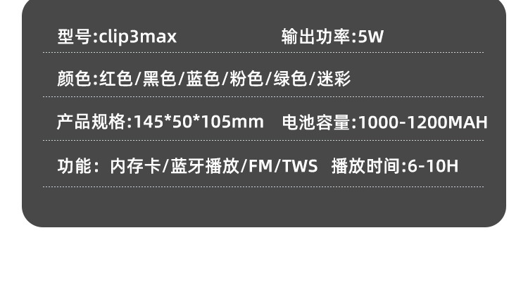 국경 도매 클립 3max 스포츠 방수 야외 후크 블루투스 오디오 미니 편리한 작은 오디오