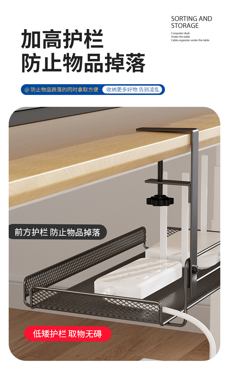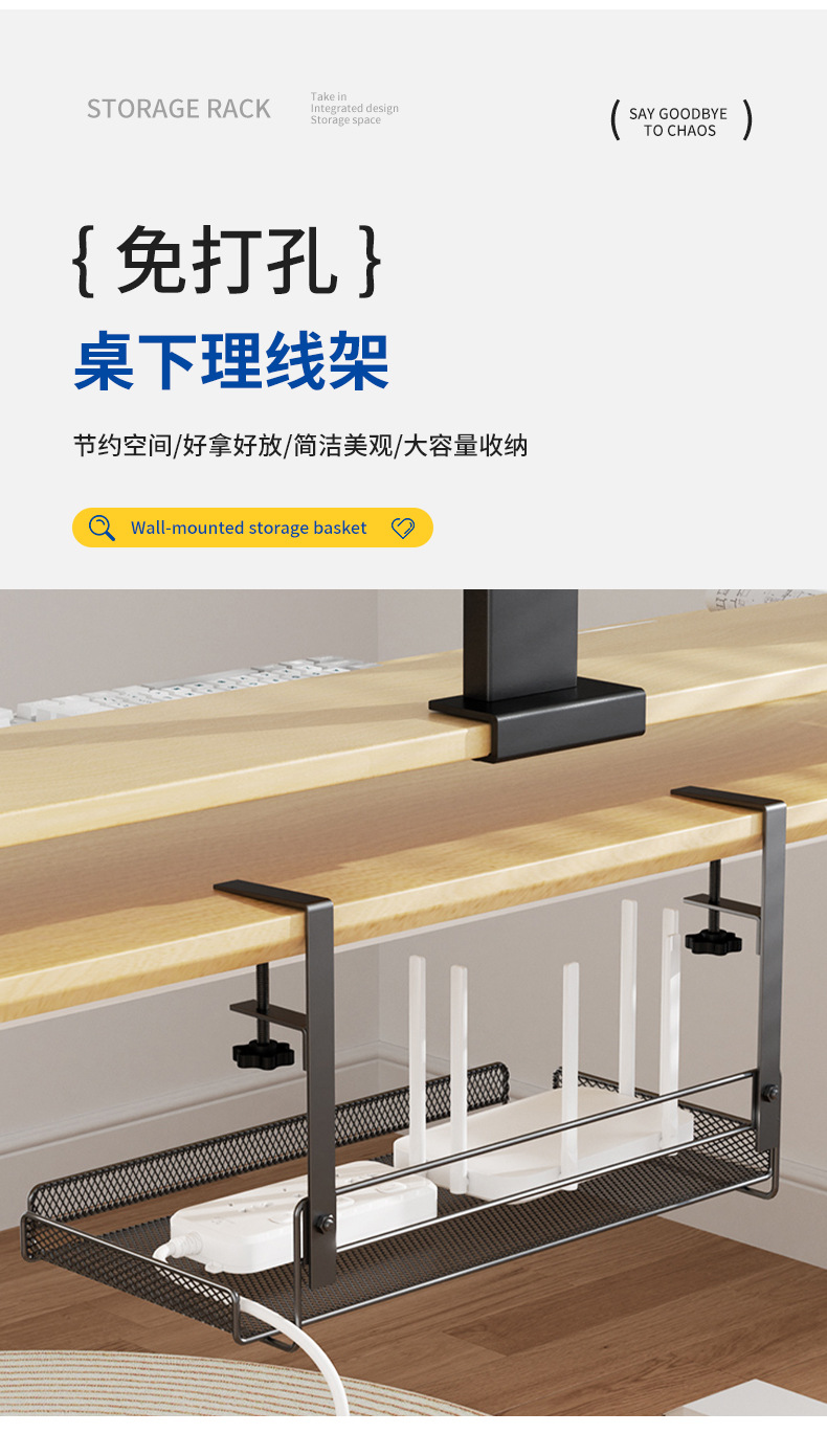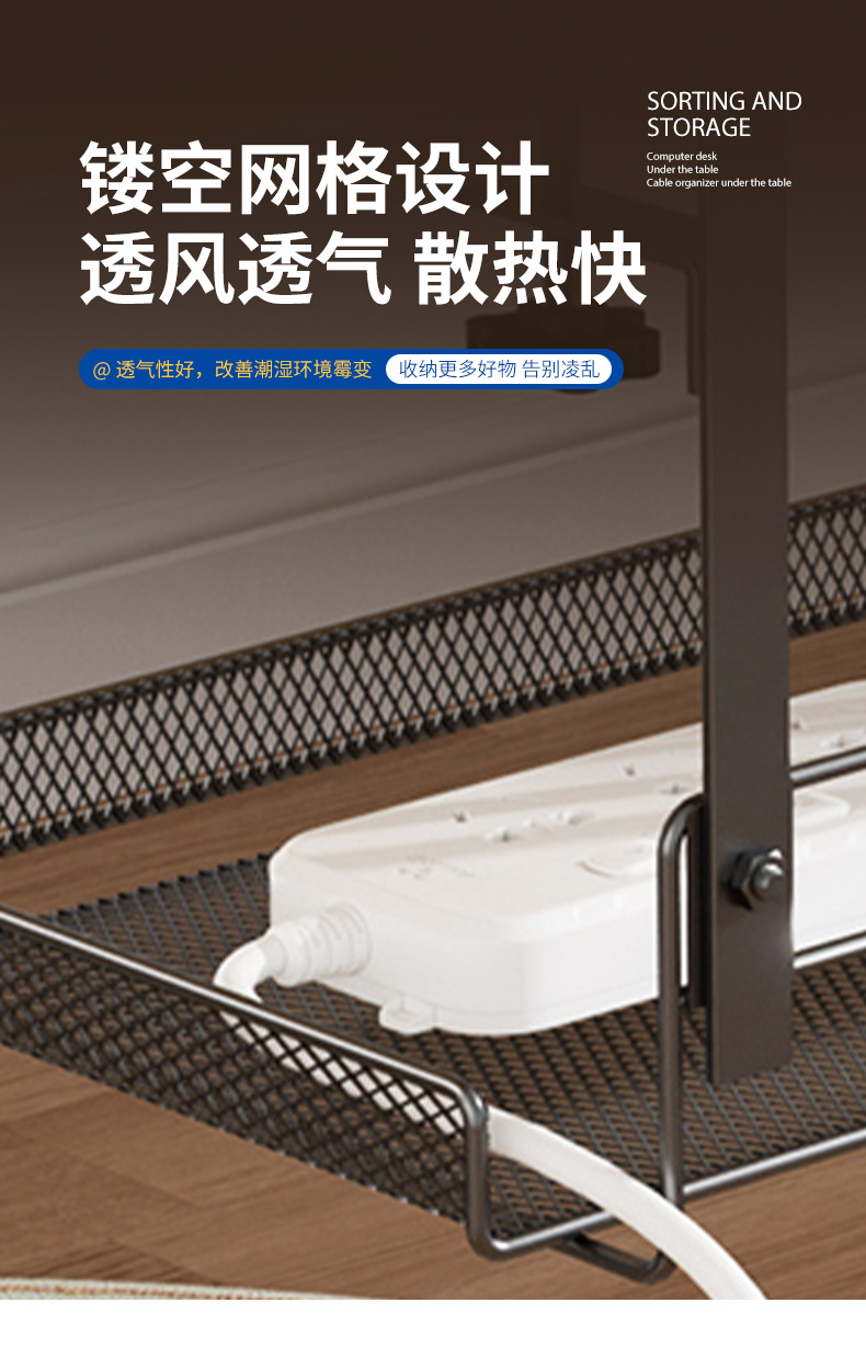 책상 밑 수납 선반, 무타공 케이블 정리대, 책상 옆 수납 선반, 사무실 책상 밑 무못 케이블 정리기, 책상