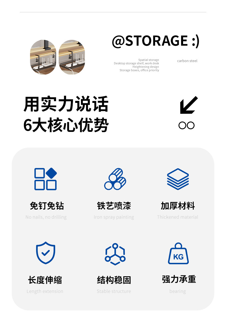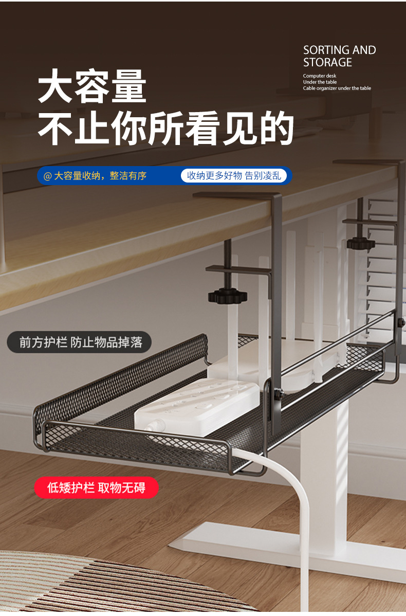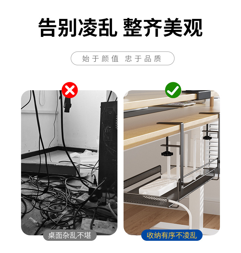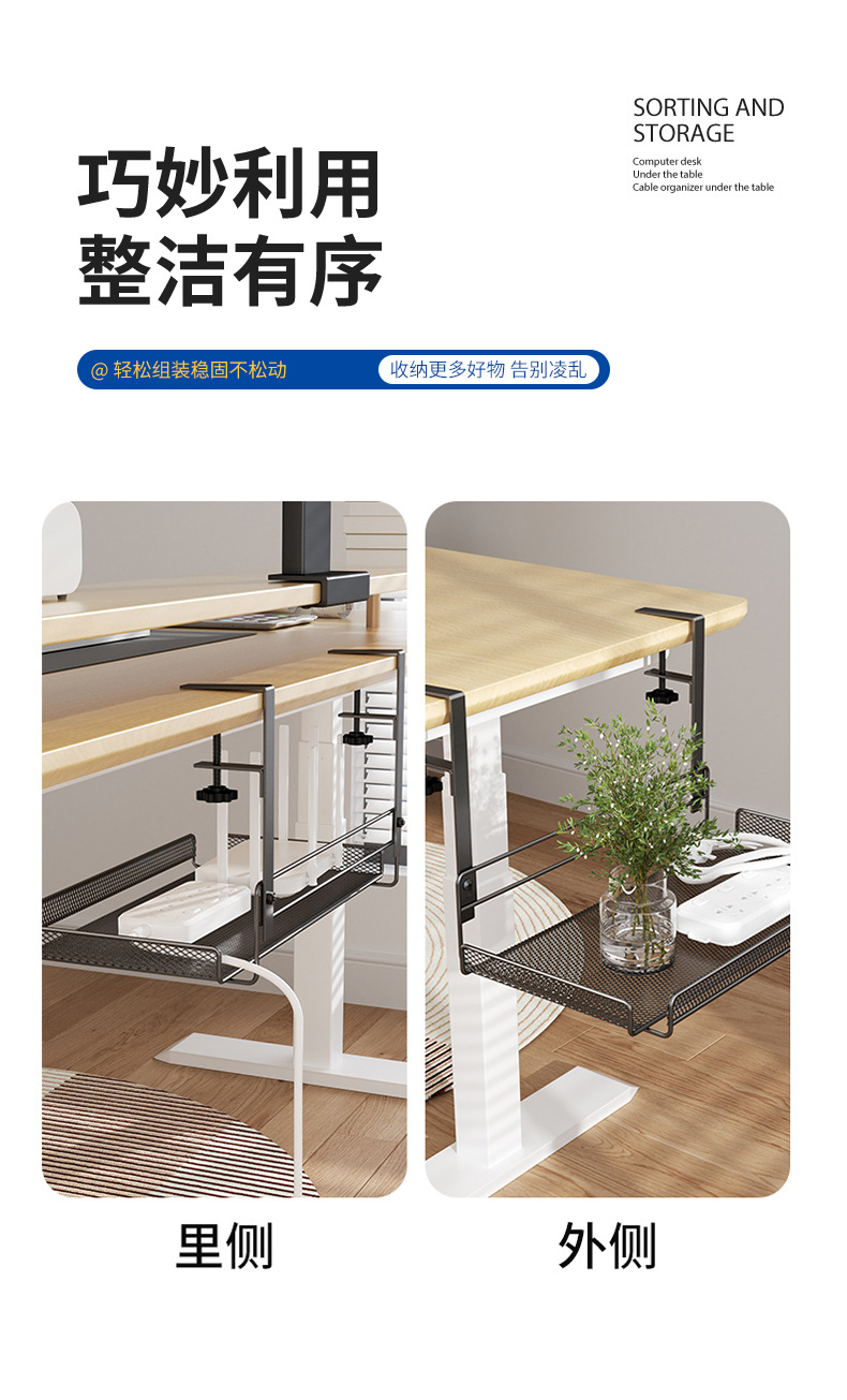 책상 밑 수납 선반, 무타공 케이블 정리대, 책상 옆 수납 선반, 사무실 책상 밑 무못 케이블 정리기, 책상
