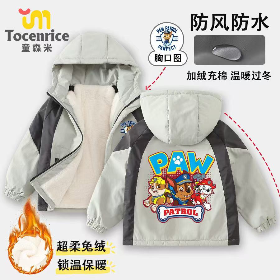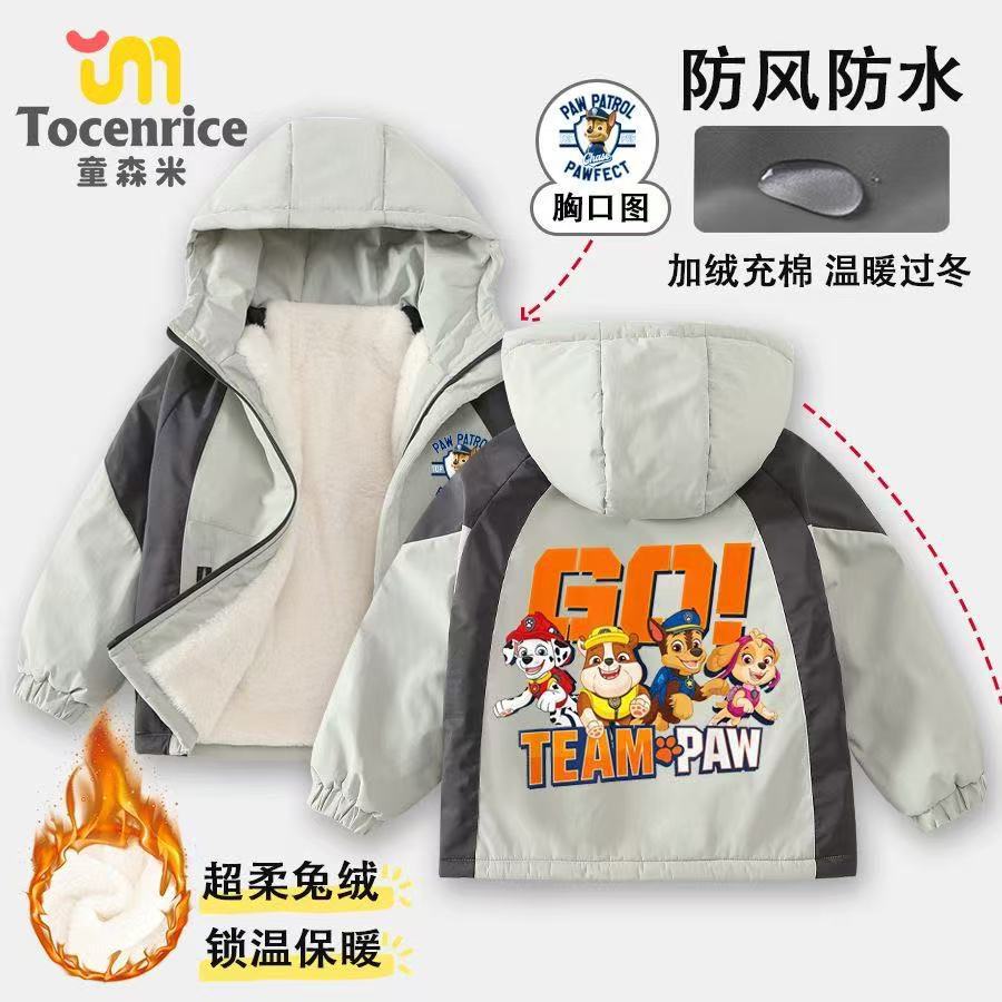 새로운 개 팀 옷 겨울면 패딩 재킷 잘 생긴 소년 코트 기모 두꺼운 후드 아동면 패딩 러쉬 탑