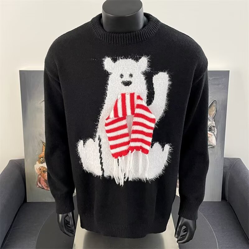 크리스마스 붉은 새해 스카프 귀여운 고양이 스웨터 풀오버 여성의 가을과 겨울 외부 착용 느슨한 게으른 스타일