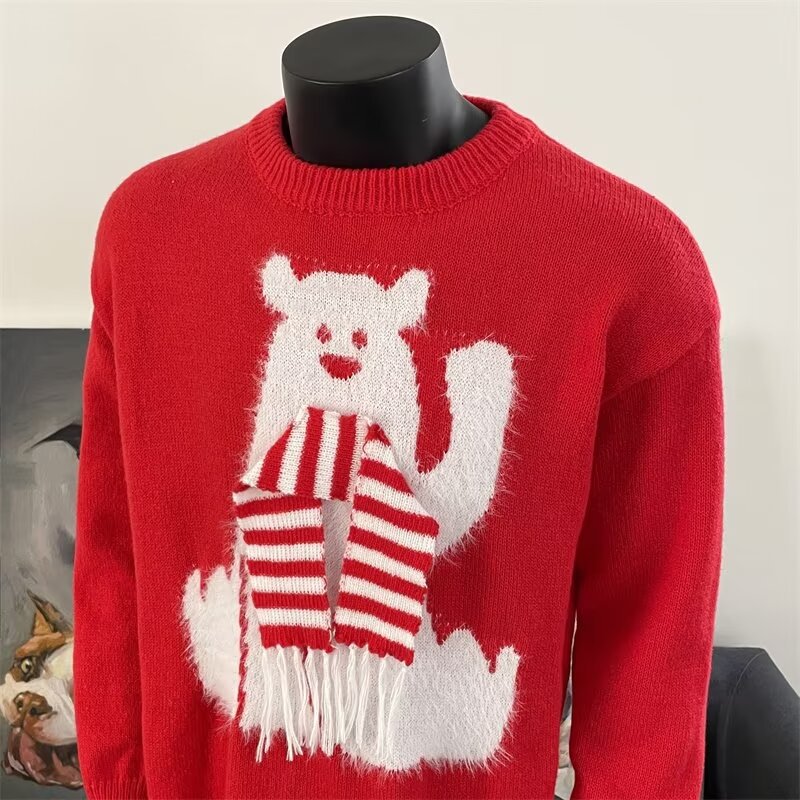 크리스마스 붉은 새해 스카프 귀여운 고양이 스웨터 풀오버 여성의 가을과 겨울 외부 착용 느슨한 게으른 스타일스토어 가기