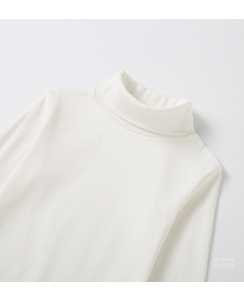 어린 이용 하이 칼라 베이스 셔츠 봄과 가을 및 겨울 아기의 큰 어린이 순면 내부 따뜻한 상단 소년 소녀 가을 옷