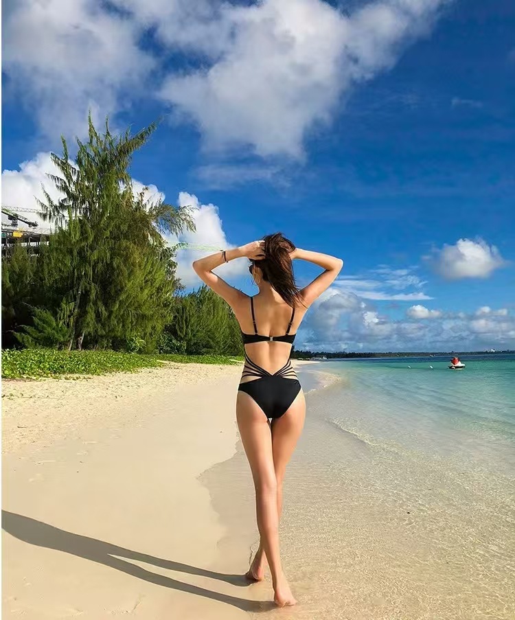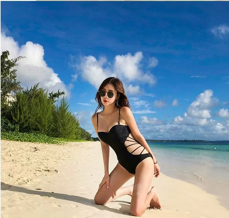 2025 새로운 원피스 수영복 단색 비키니 유럽과 미국 수영복 여성 등없는 수영복 섹시한 비키니