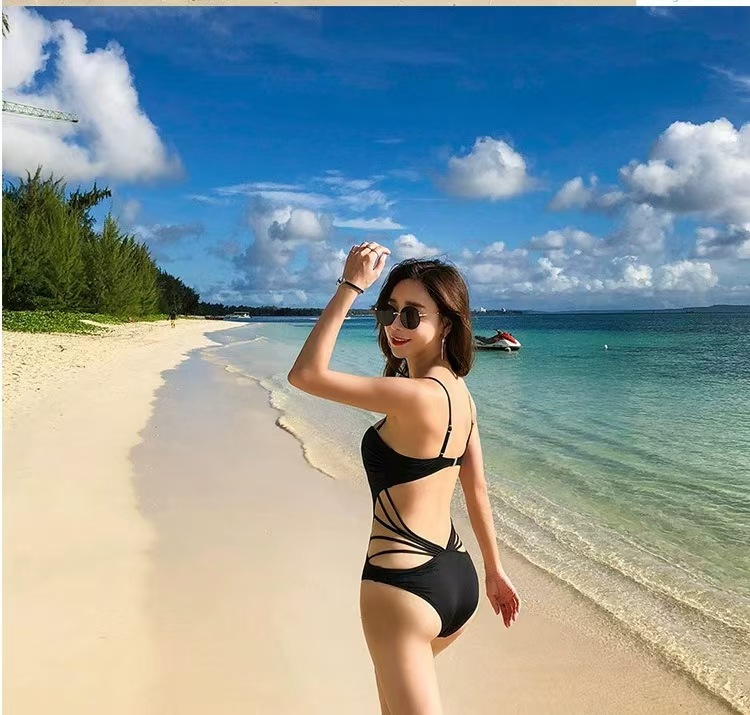 2025 새로운 원피스 수영복 단색 비키니 유럽과 미국 수영복 여성 등없는 수영복 섹시한 비키니스토어 가기