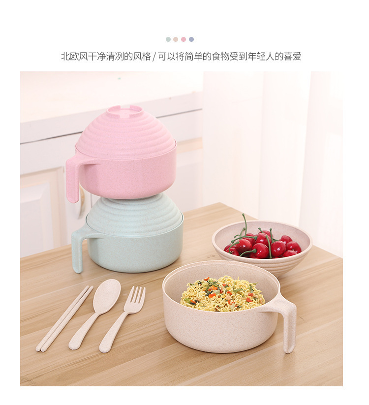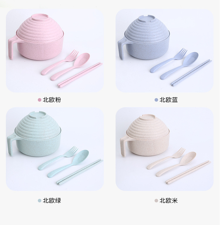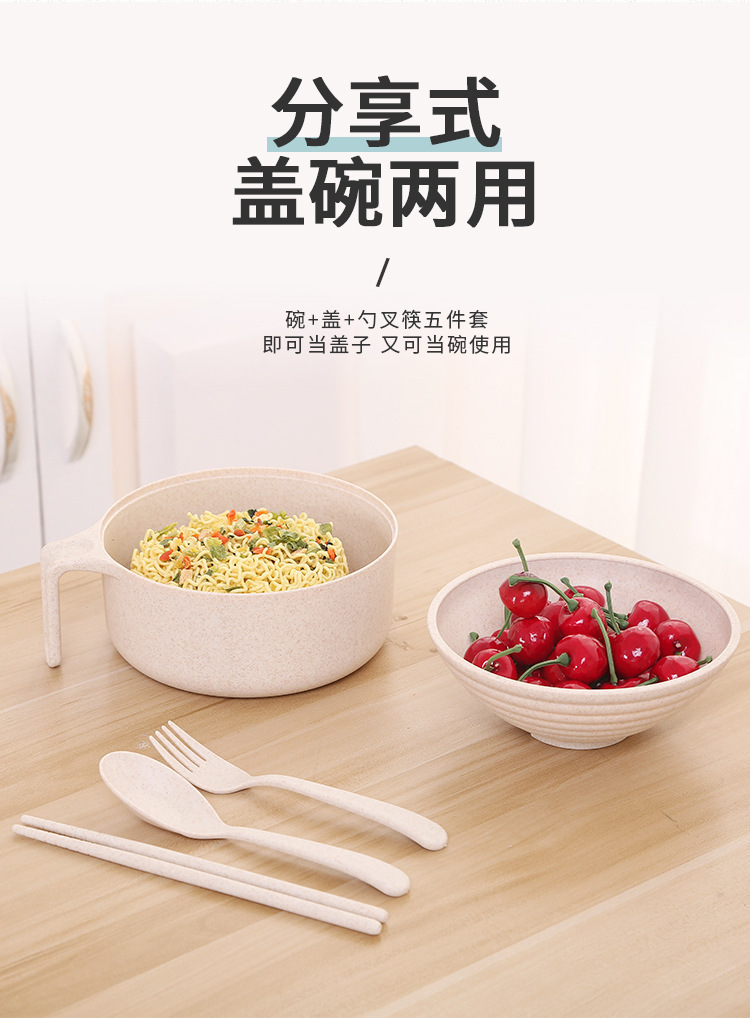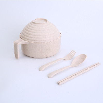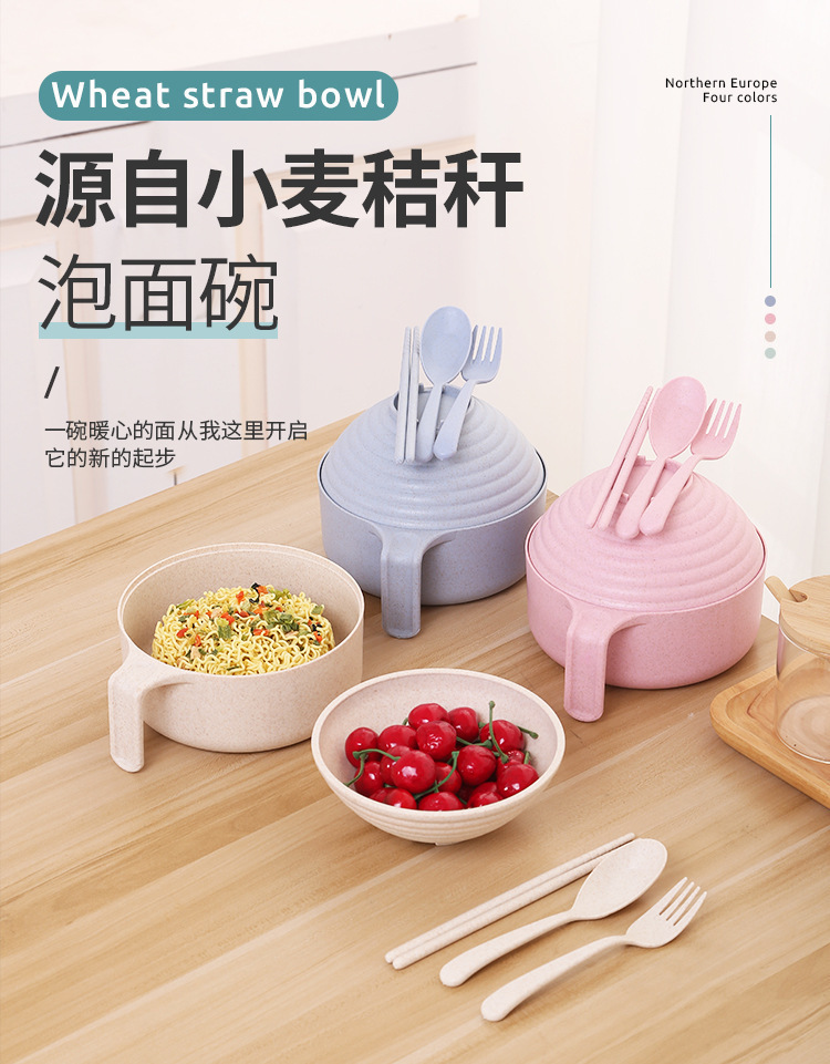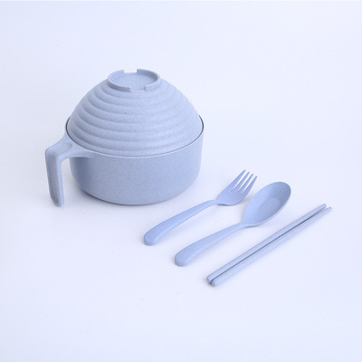 패스트 푸드 컵 그릇 밀짚 숟가락 포크 식기 도시락 학생 기숙사 젓가락 뚜껑이 달린 밀과 함께 5 조각 세트 인스턴트 국수 그릇