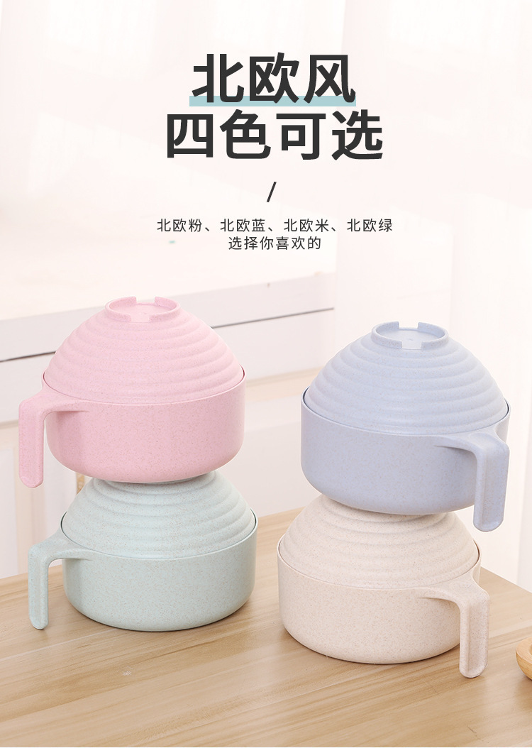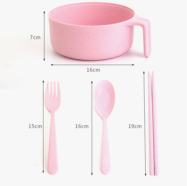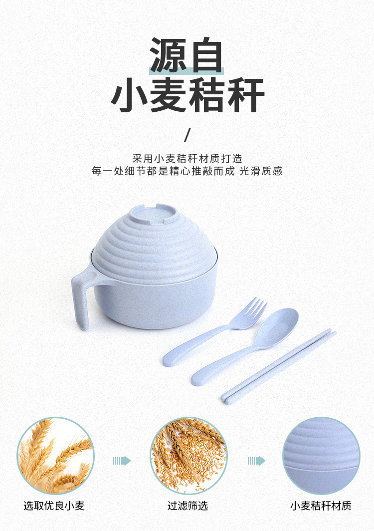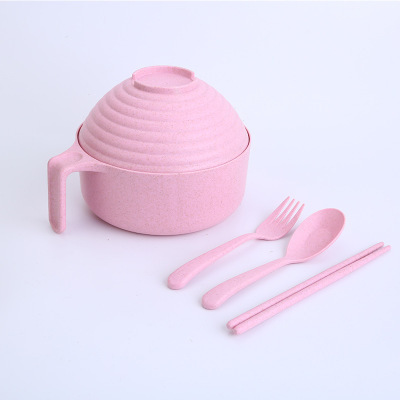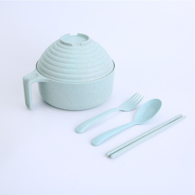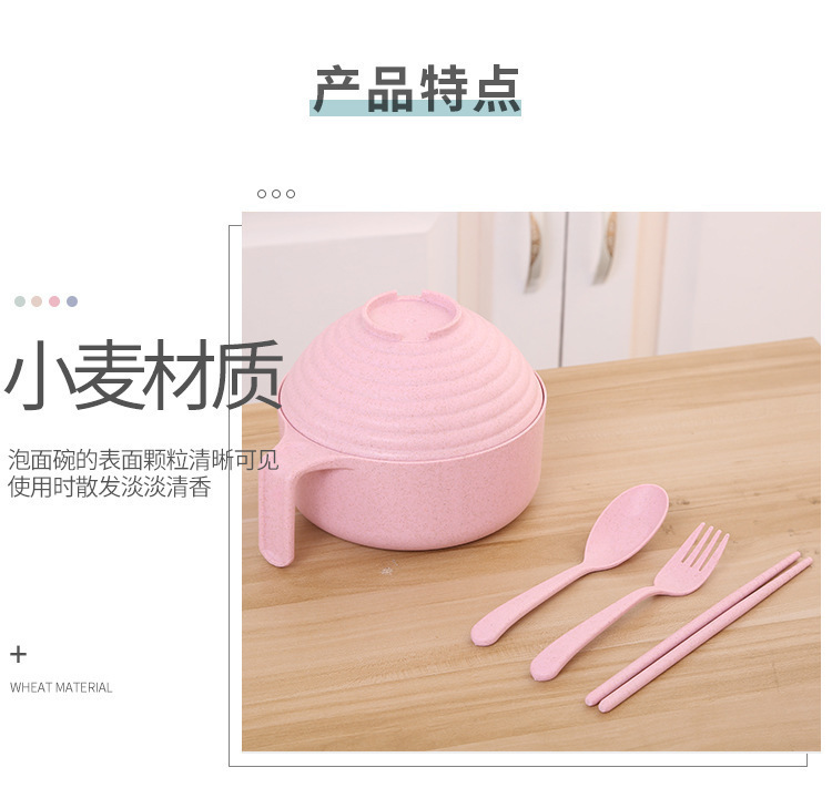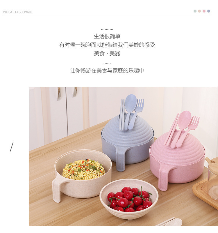 패스트 푸드 컵 그릇 밀짚 숟가락 포크 식기 도시락 학생 기숙사 젓가락 뚜껑이 달린 밀과 함께 5 조각 세트 인스턴트 국수 그릇