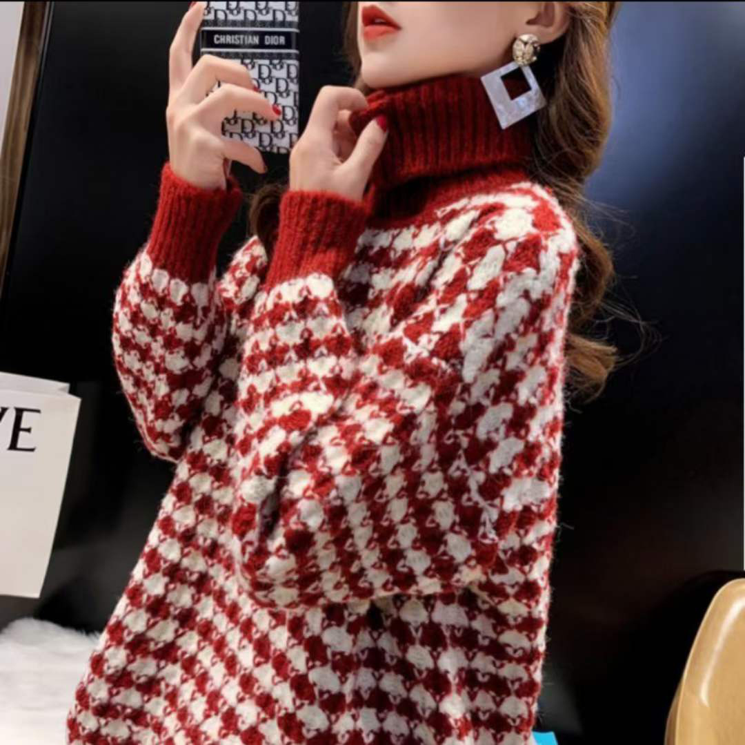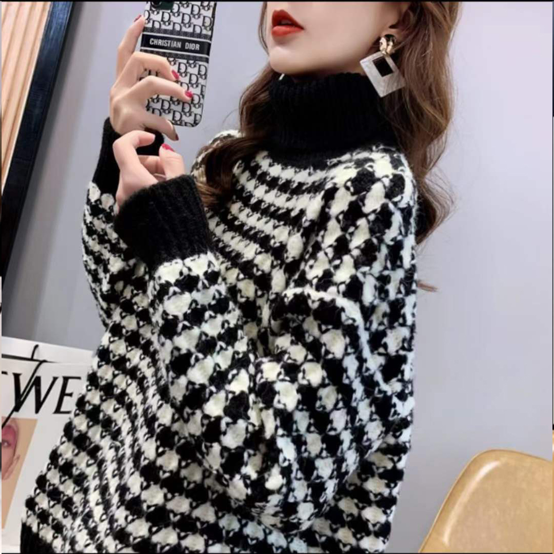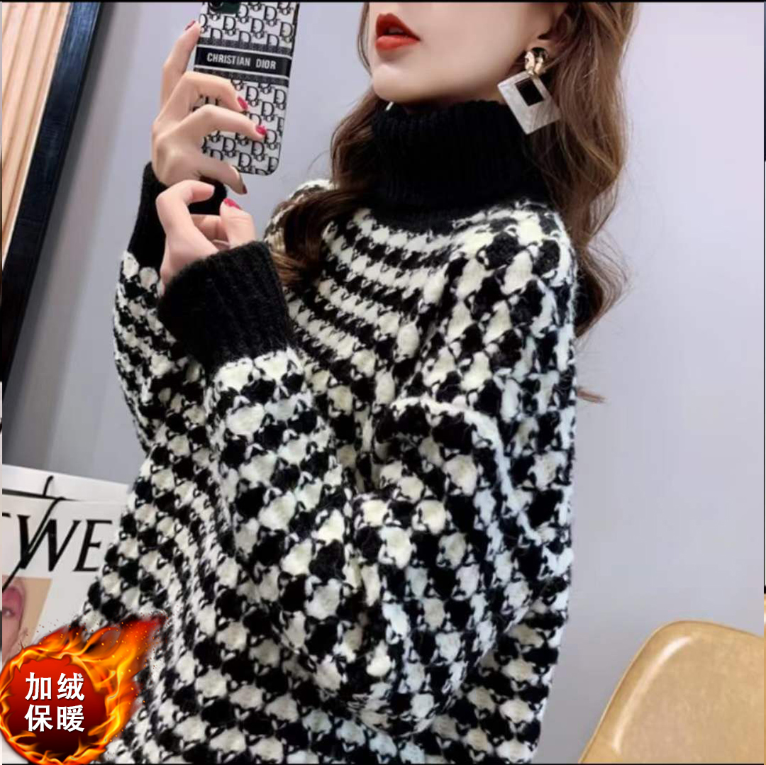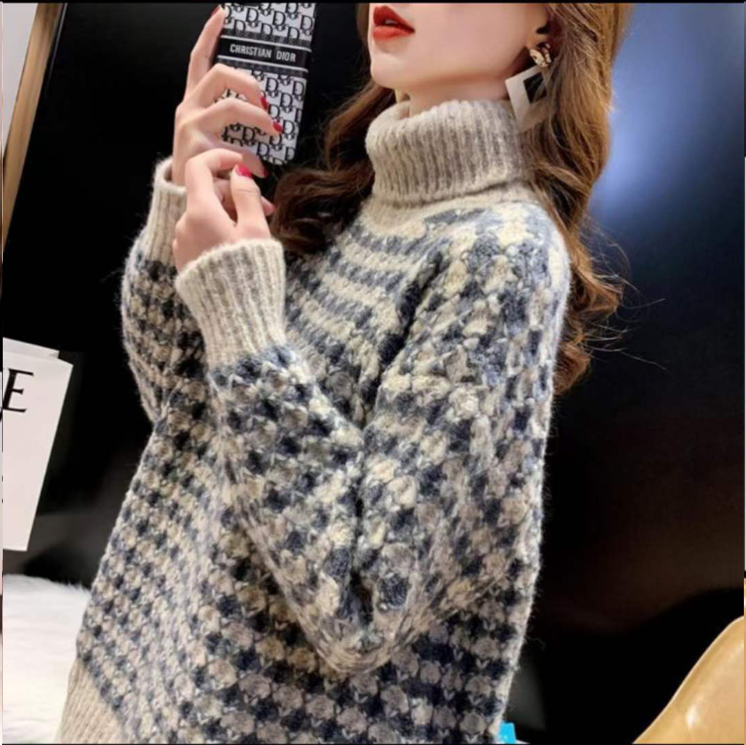 터틀넥 여성용 루즈 아우터 2024 가을과 겨울 새로운 게으른 스타일 풀오버 니트 탑 (두꺼운 기모 포함)스토어 가기