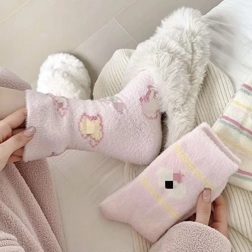 겨울 두꺼운 수면복 여자 홈 양말 가을과 겨울 따뜻한 수면 양말 귀여운 모피 양말 여성