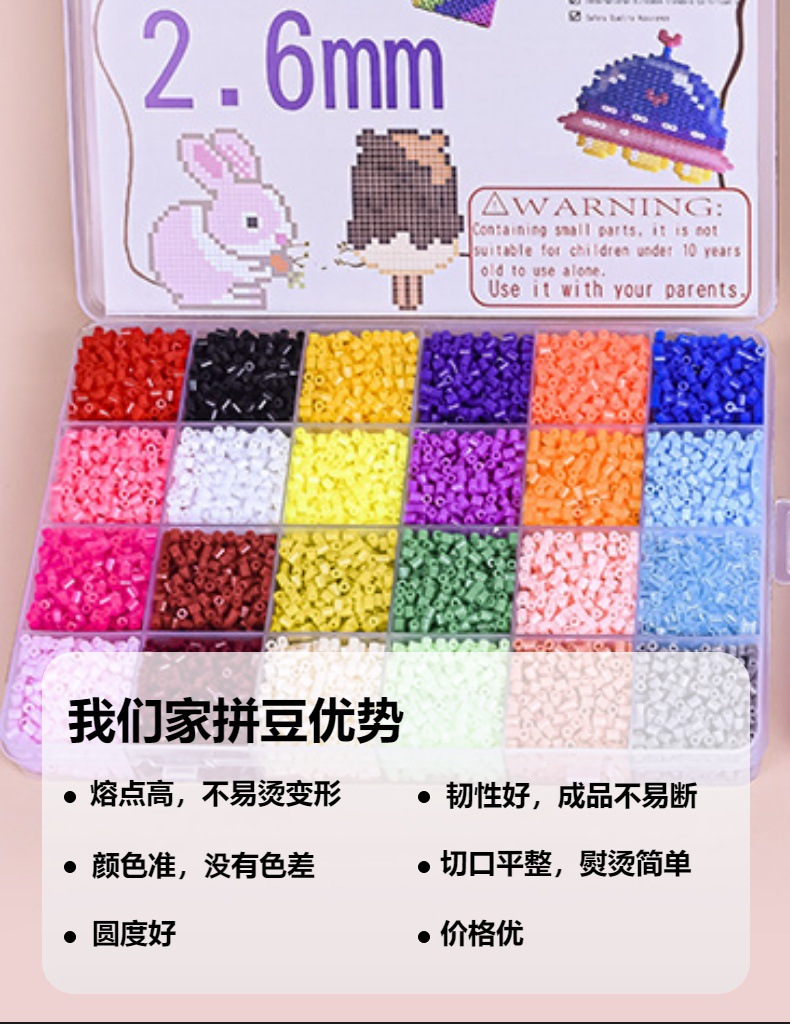 공장 24 색 2.6mm 주문 콩 융합 콩 72 색 세트 박스 EVA 철자 콩 퍼즐 어린이 장난감 도매스토어 가기