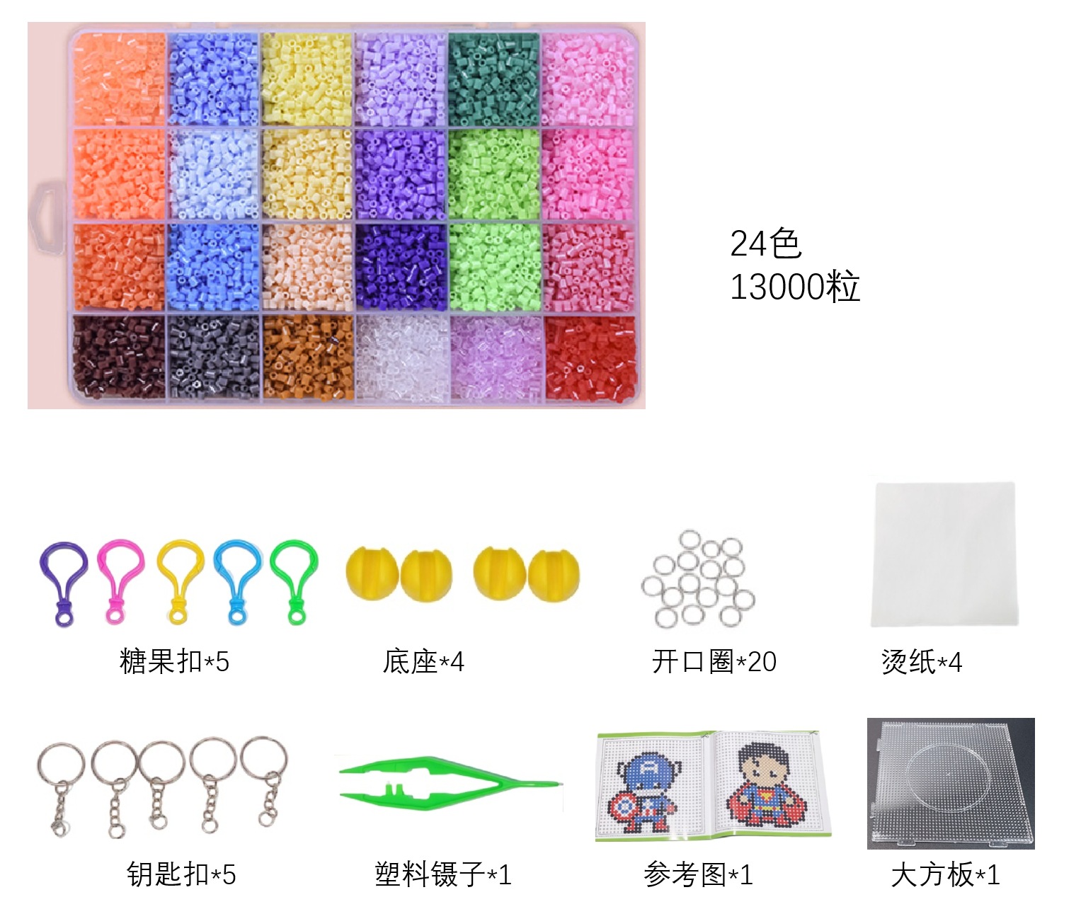 공장 24 색 2.6mm 주문 콩 융합 콩 72 색 세트 박스 EVA 철자 콩 퍼즐 어린이 장난감 도매
