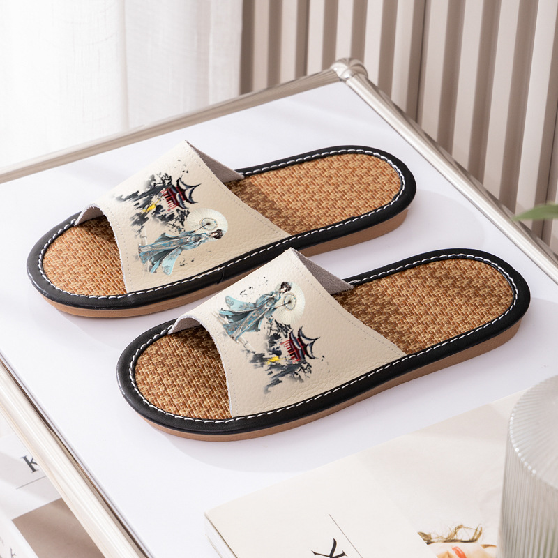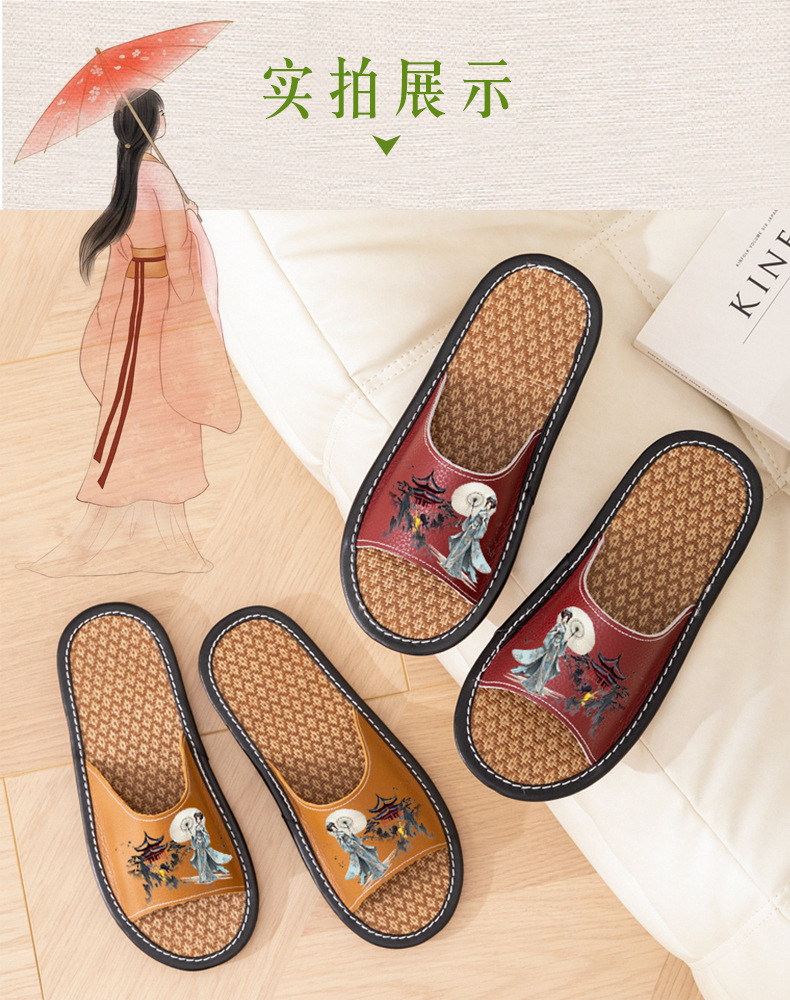 리넨 슬리퍼 여성용 여름 플랫 슬리퍼 가정 및 가정용 실내 비 슬립 사계절 남성용 외관 슬리퍼스토어 가기