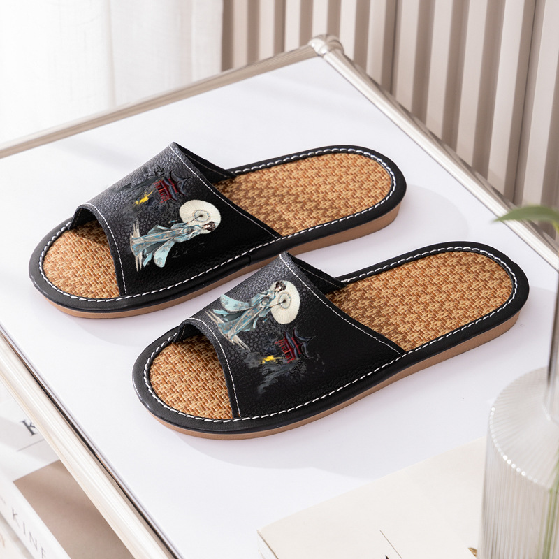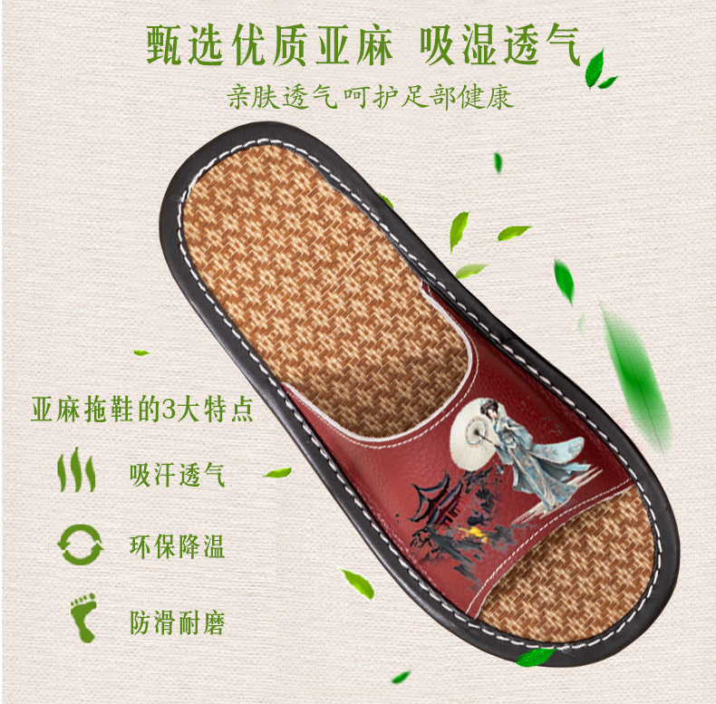 리넨 슬리퍼 여성용 여름 플랫 슬리퍼 가정 및 가정용 실내 비 슬립 사계절 남성용 외관 슬리퍼