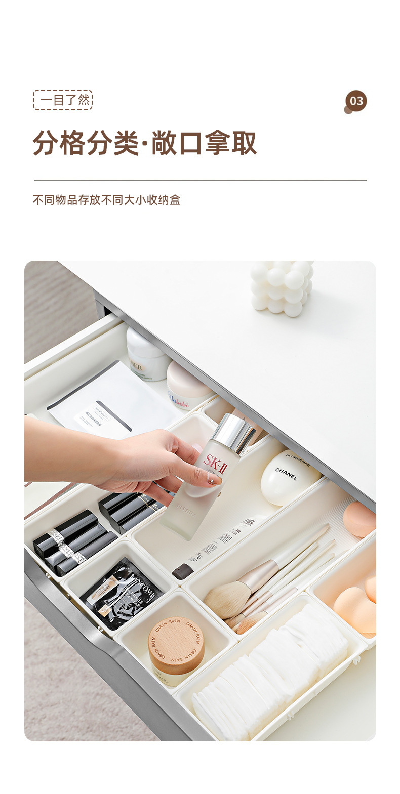 서랍 내장 파티션 상자 화장품 보관 상자 드레싱 테이블 식기 분류 기숙사 데스크탑 스킨 케어 제품 마무리