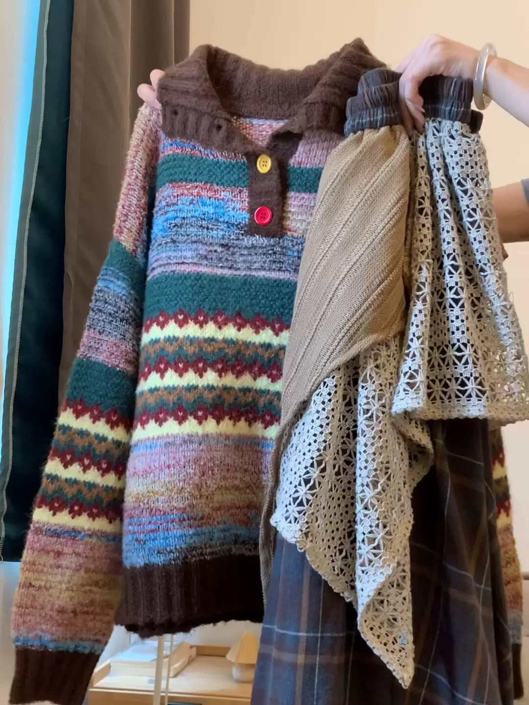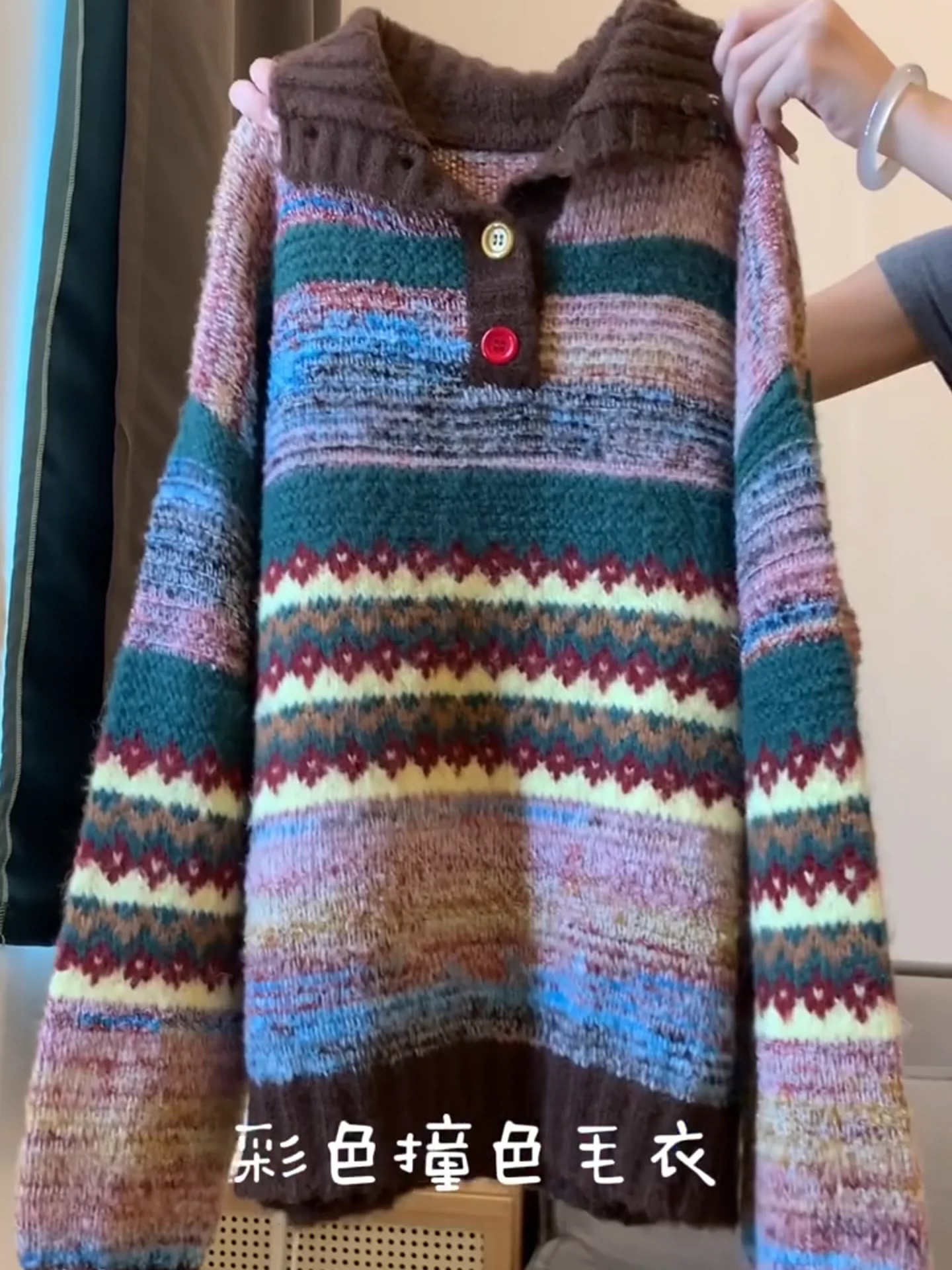 빈티지 컬러 콘트라스트 옷깃 풀오버 스웨터 여성의 가을과 겨울 게으른 소프트 왁스 슬리밍 올 매치 아우터웨어 니트 탑스토어 가기